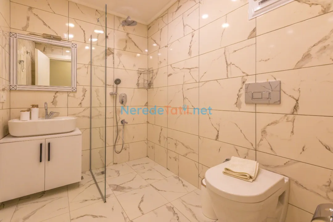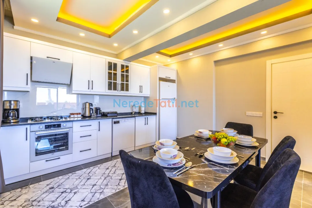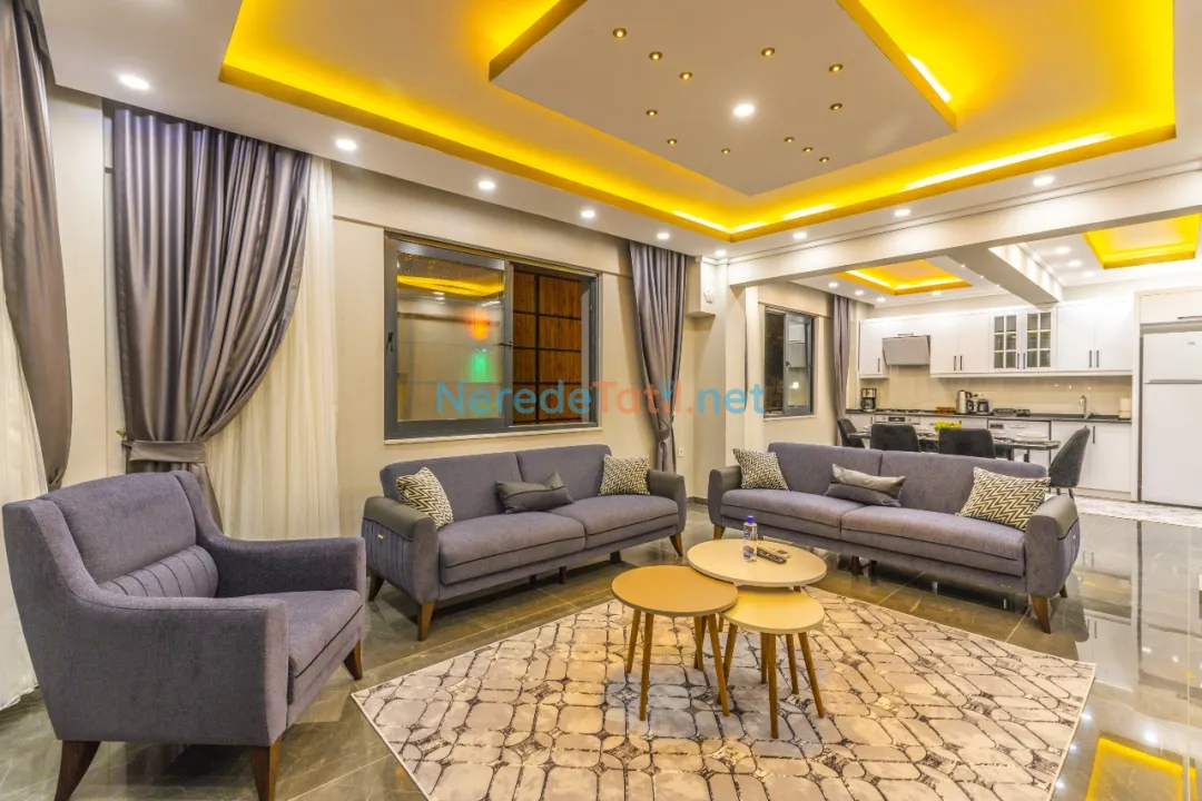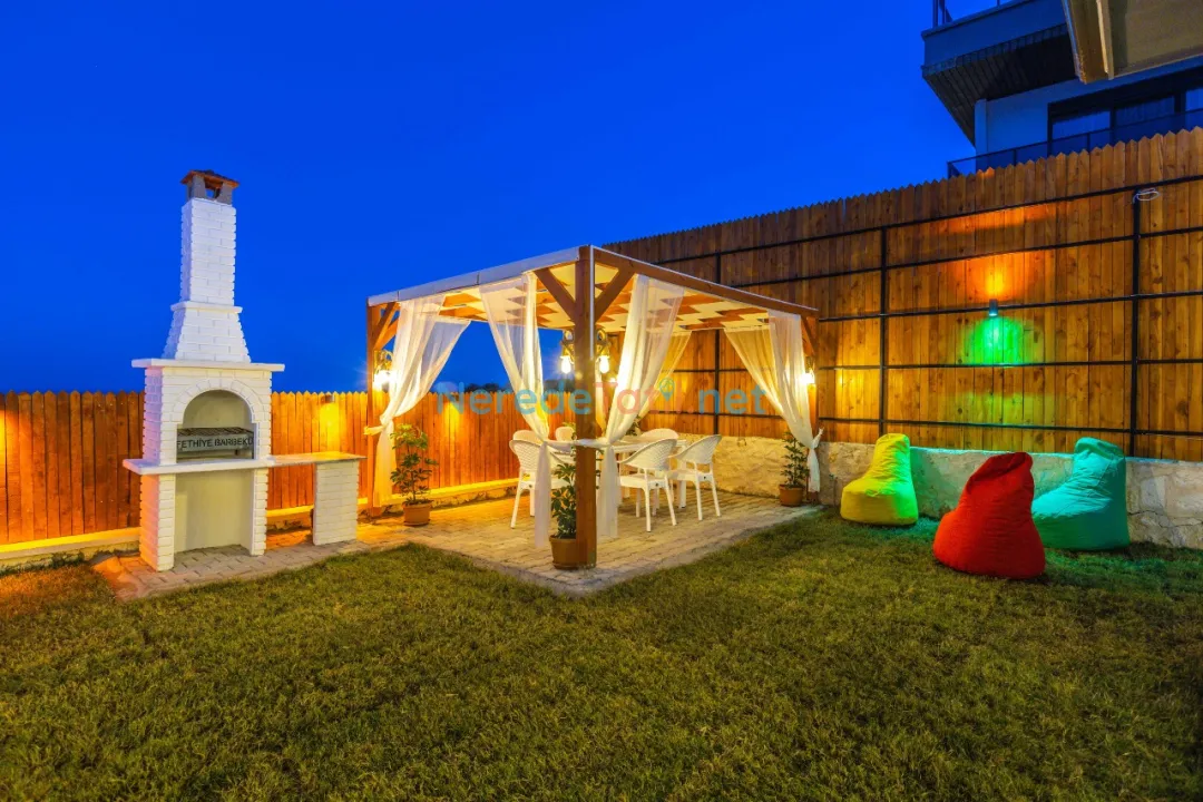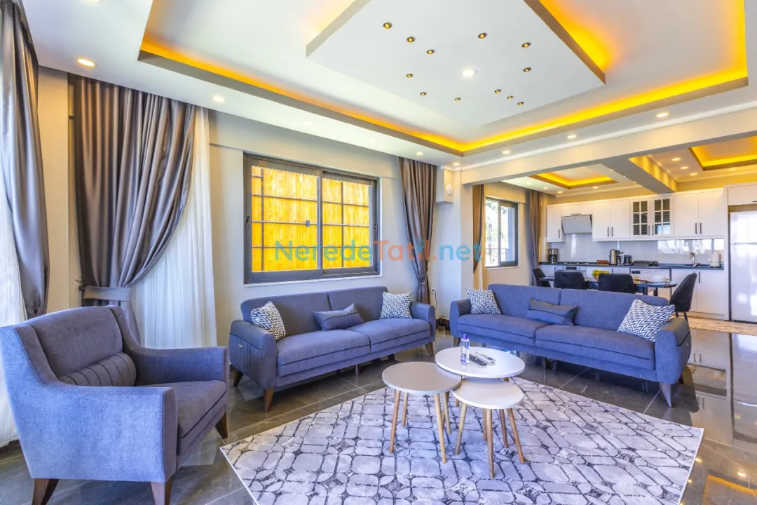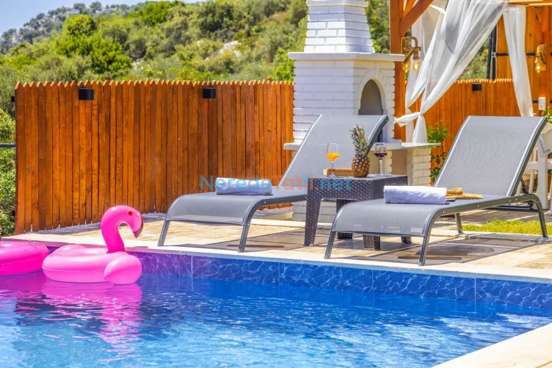 Bahçede ise BBQ mangal yapabilir ve doğa manzarasının tadını çıkarabilirsiniz. Araçları için otopark imkanı sunan villa, şehir merkezine 5 km, plaja 9 km ve en yakın markete sadece 1 km uzaklıktadır. Çocuk havuzu ve kapalı havuz bulunmamakla birlikte, bu villa balayı çiftleri ve muhafazakar tatil arayanlar için de idealdir.