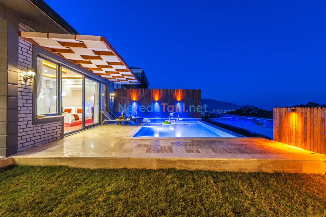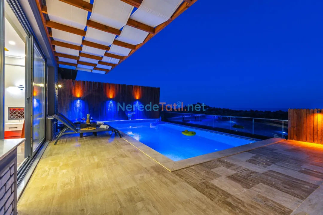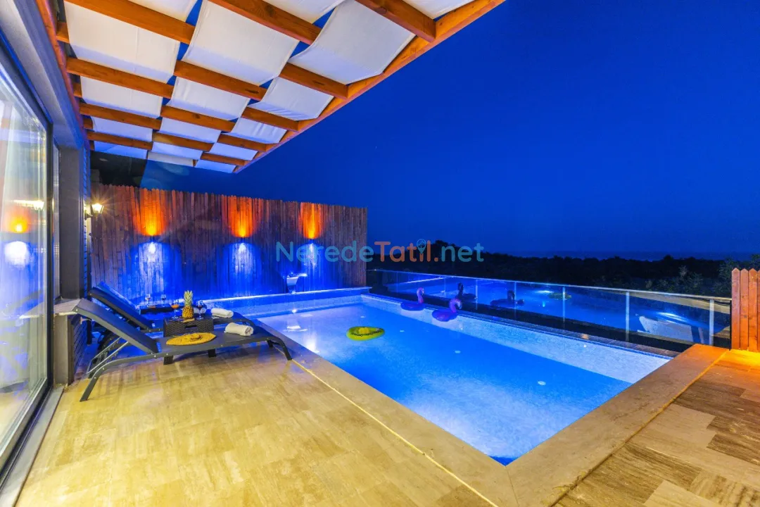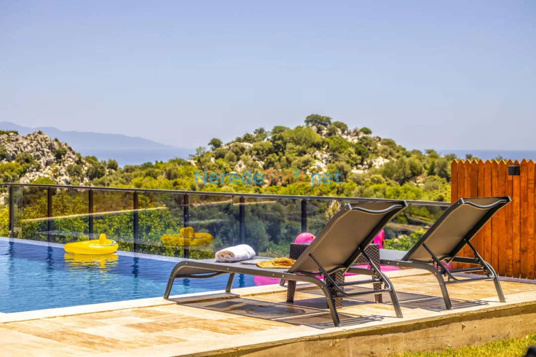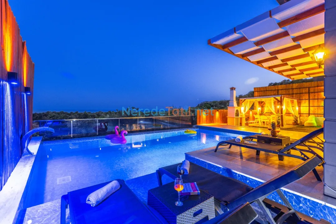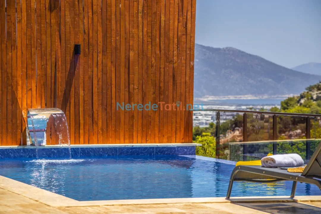 Demre'de konumlanan bu lüks villa, deniz manzarası ile konuklarına eşsiz bir tatil deneyimi sunmaktadır. Özel havuz keyfi yaşamak isteyenler için ideal olan bu villa, 4 metre genişliğinde ve 8 metre boyunda bir havuza sahiptir. Korunaklı havuz yapısıyla mahremiyet arayan tatilciler için mükemmel bir seçimdir.
