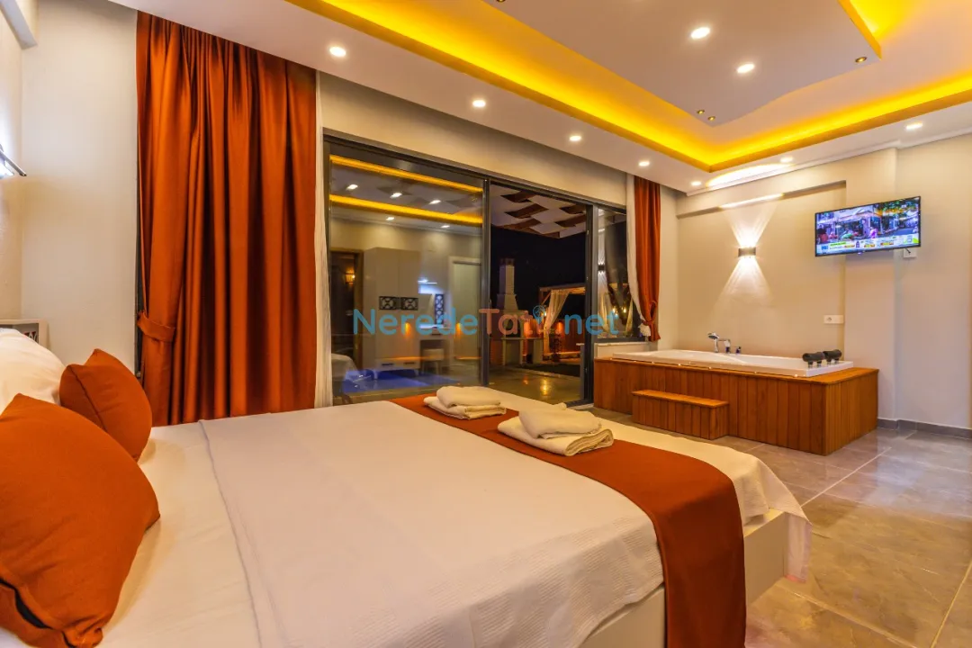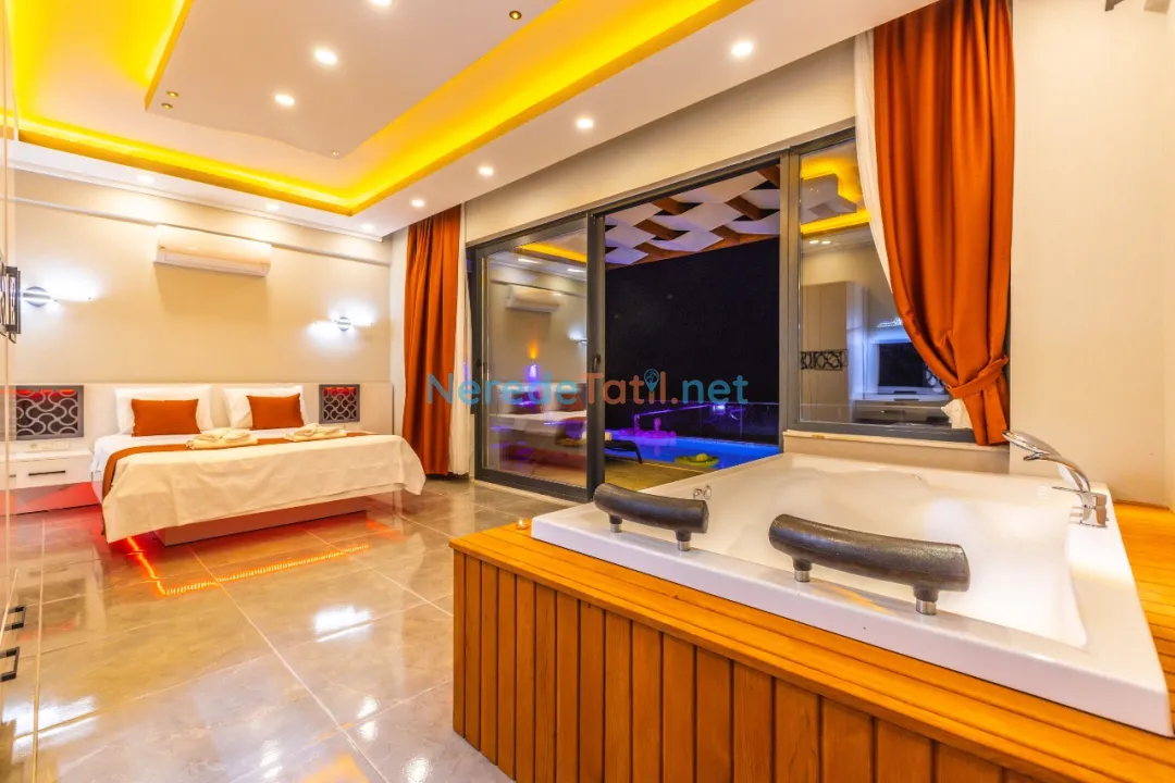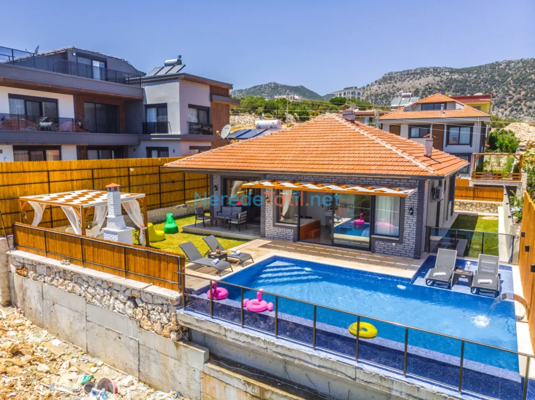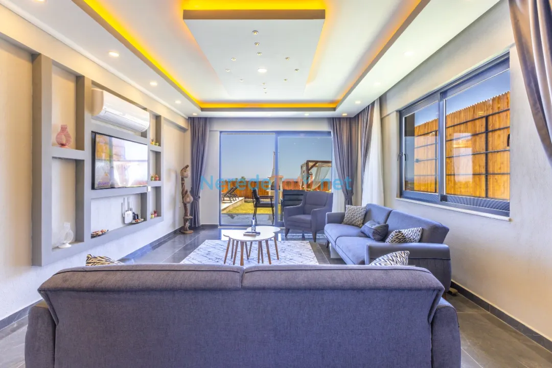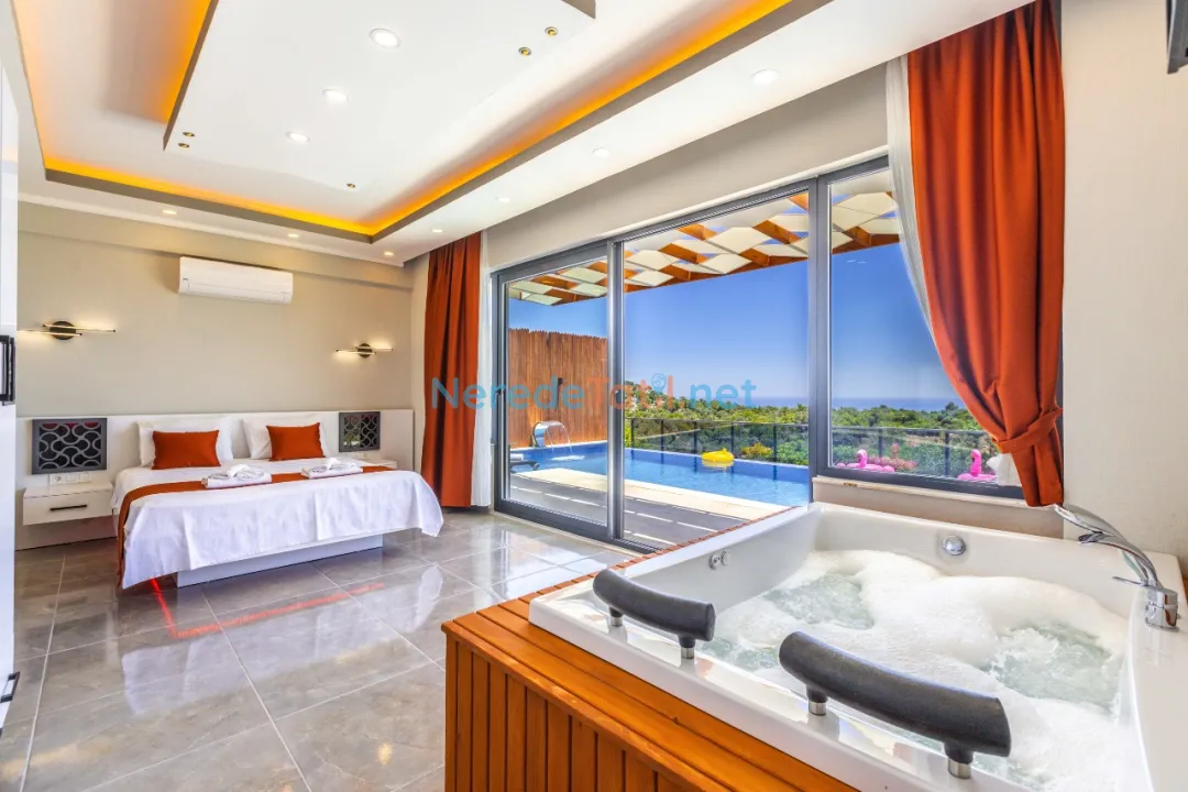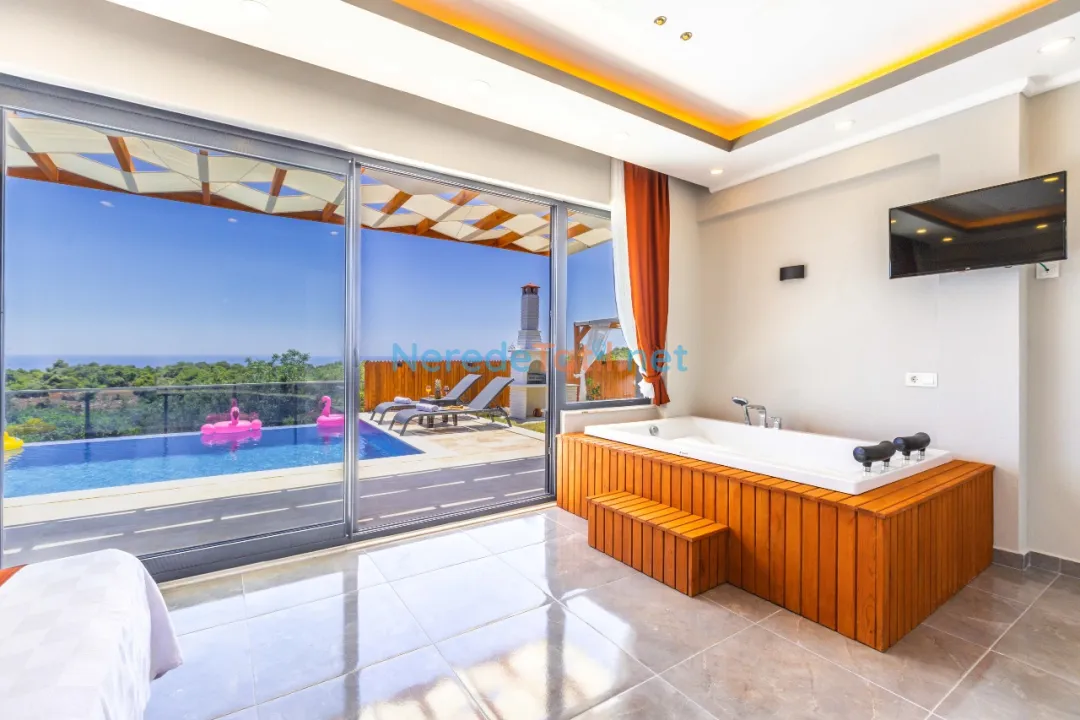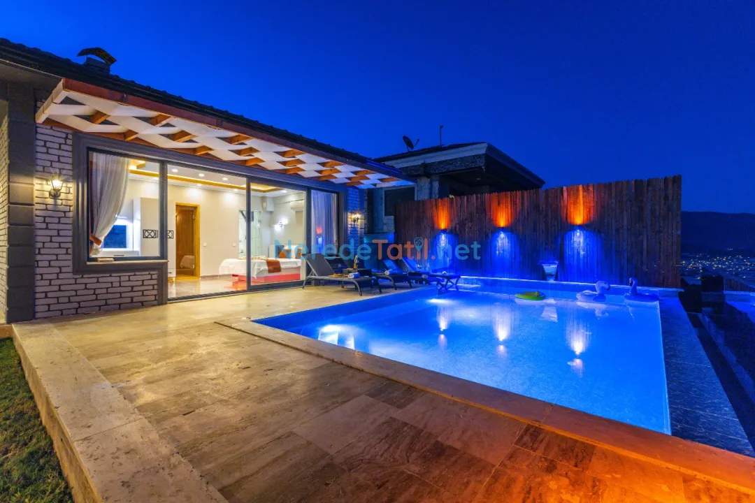 Demre'de konumlanan bu lüks villa, deniz manzarası ile konuklarına eşsiz bir tatil deneyimi sunmaktadır. Özel havuz keyfi yaşamak isteyenler için ideal olan bu villa, 4 metre genişliğinde ve 8 metre boyunda bir havuza sahiptir. Korunaklı havuz yapısıyla mahremiyet arayan tatilciler için mükemmel bir seçimdir.