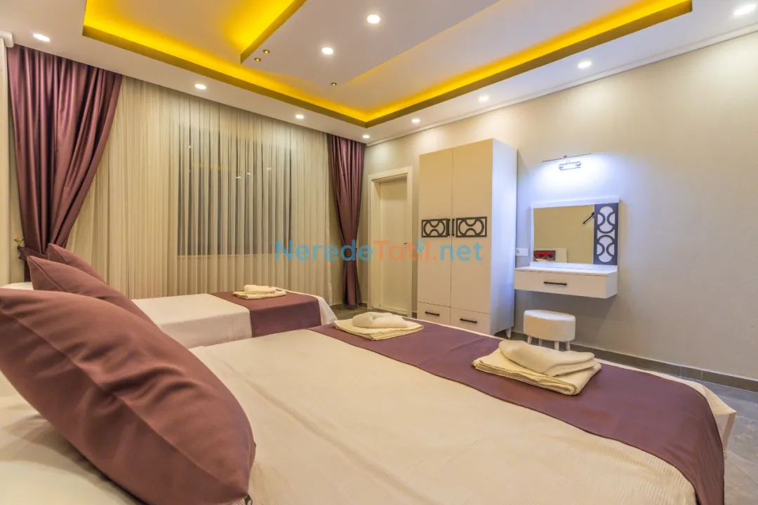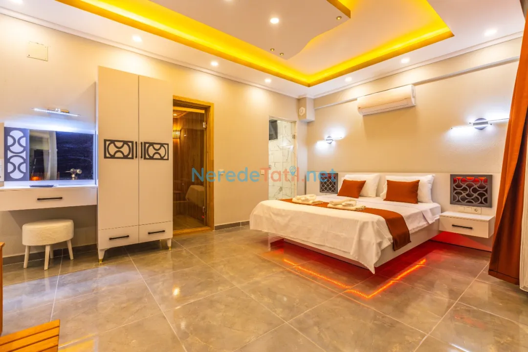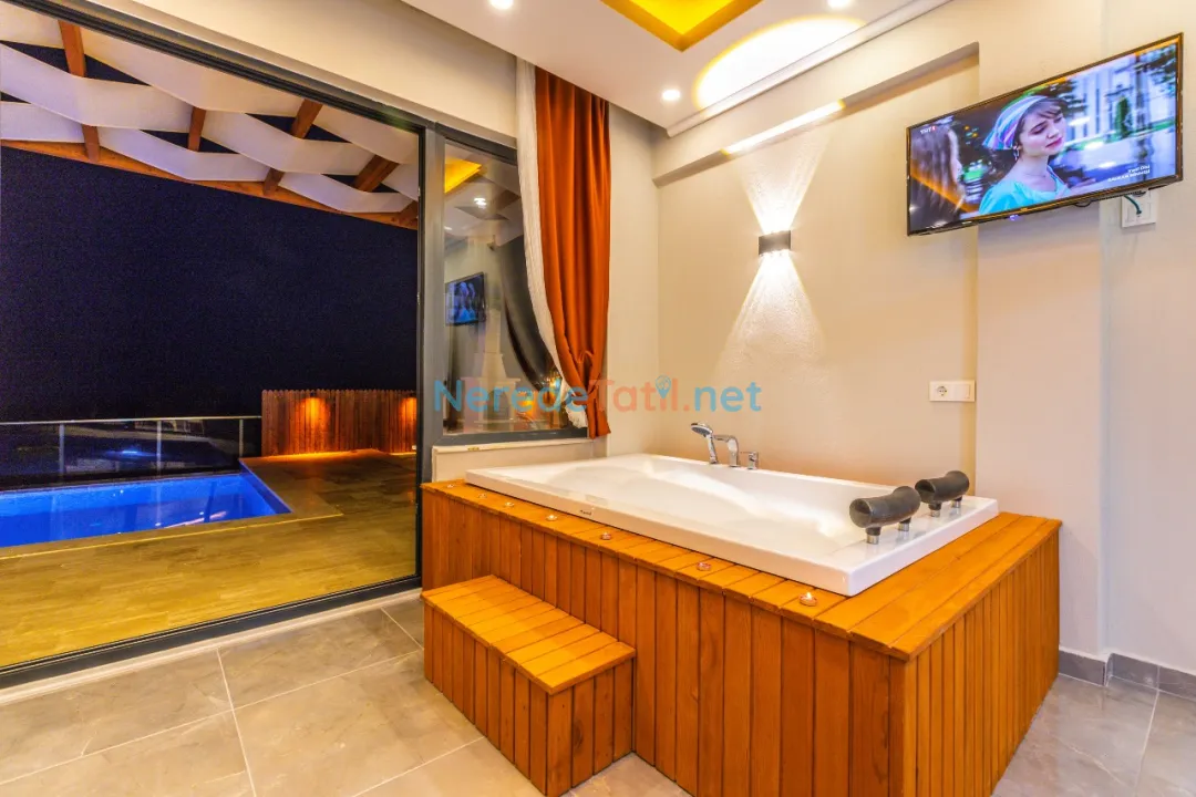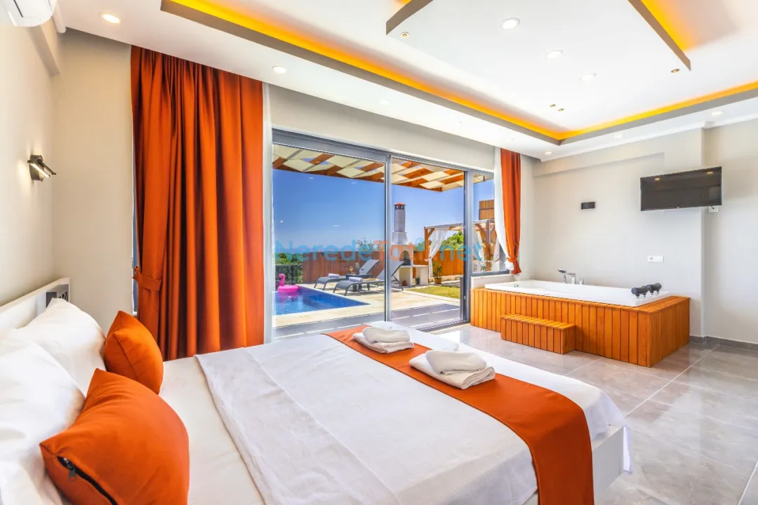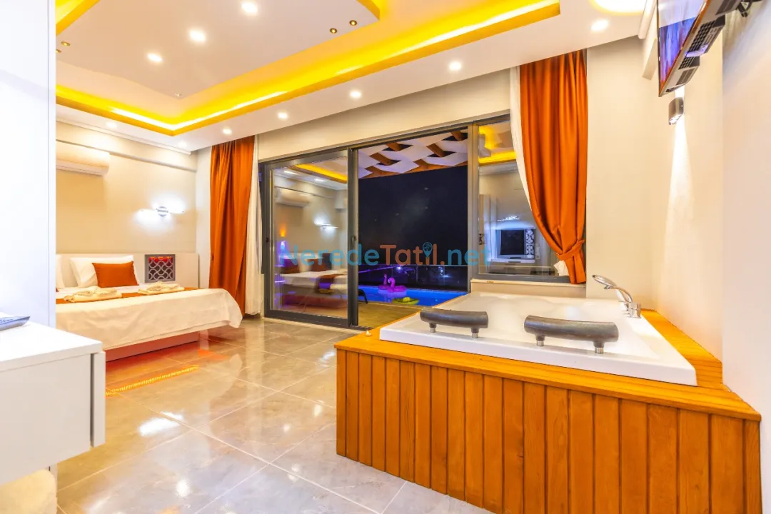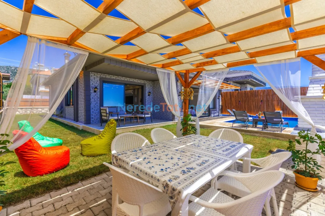 Demre'de konumlanan bu lüks villa, deniz manzarası ile konuklarına eşsiz bir tatil deneyimi sunmaktadır. Özel havuz keyfi yaşamak isteyenler için ideal olan bu villa, 4 metre genişliğinde ve 8 metre boyunda bir havuza sahiptir. Korunaklı havuz yapısıyla mahremiyet arayan tatilciler için mükemmel bir seçimdir.