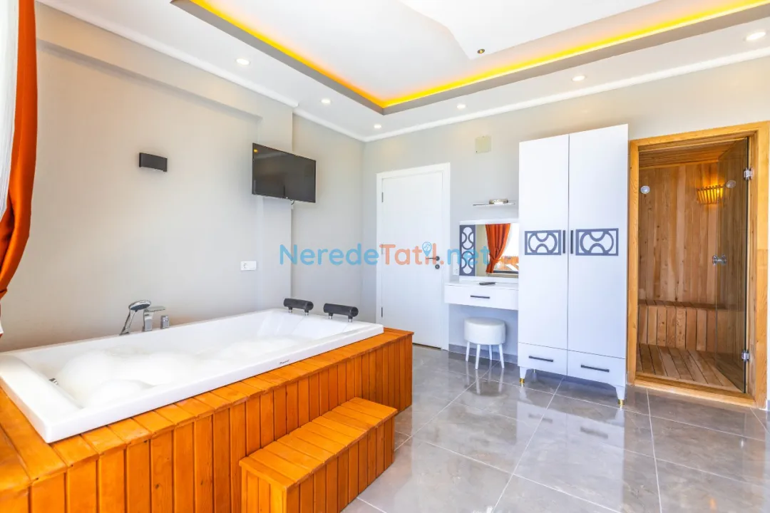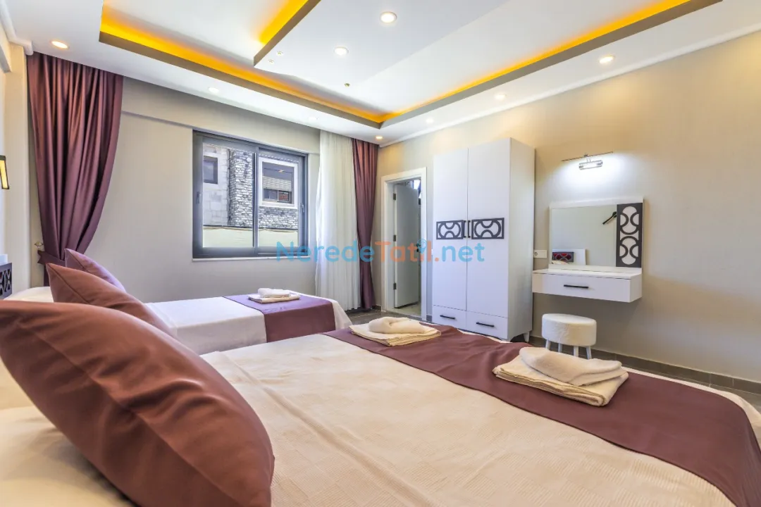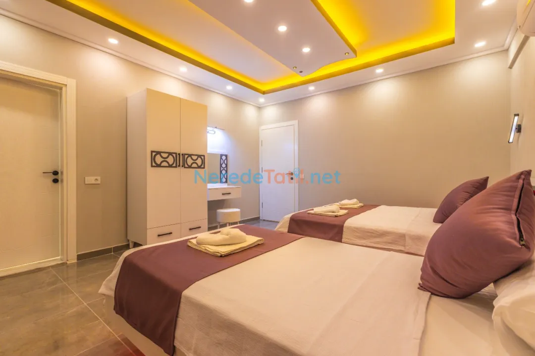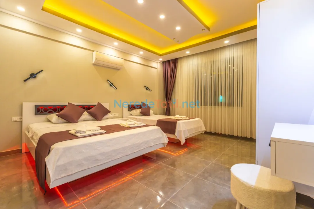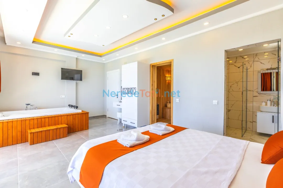 Villada iki yatak odası ve iki banyo bulunmaktadır. Yatak odalarında bir adet çift kişilik yatak ve üç adet tek kişilik yatak mevcuttur, toplamda 5 kişilik bir kapasite sunmaktadır. Tatilinizi rahatlatıcı hale getirmek için villada jakuzi, sauna, ütü ve saç kurutma makinesi gibi olanaklar da bulunmaktadır.
