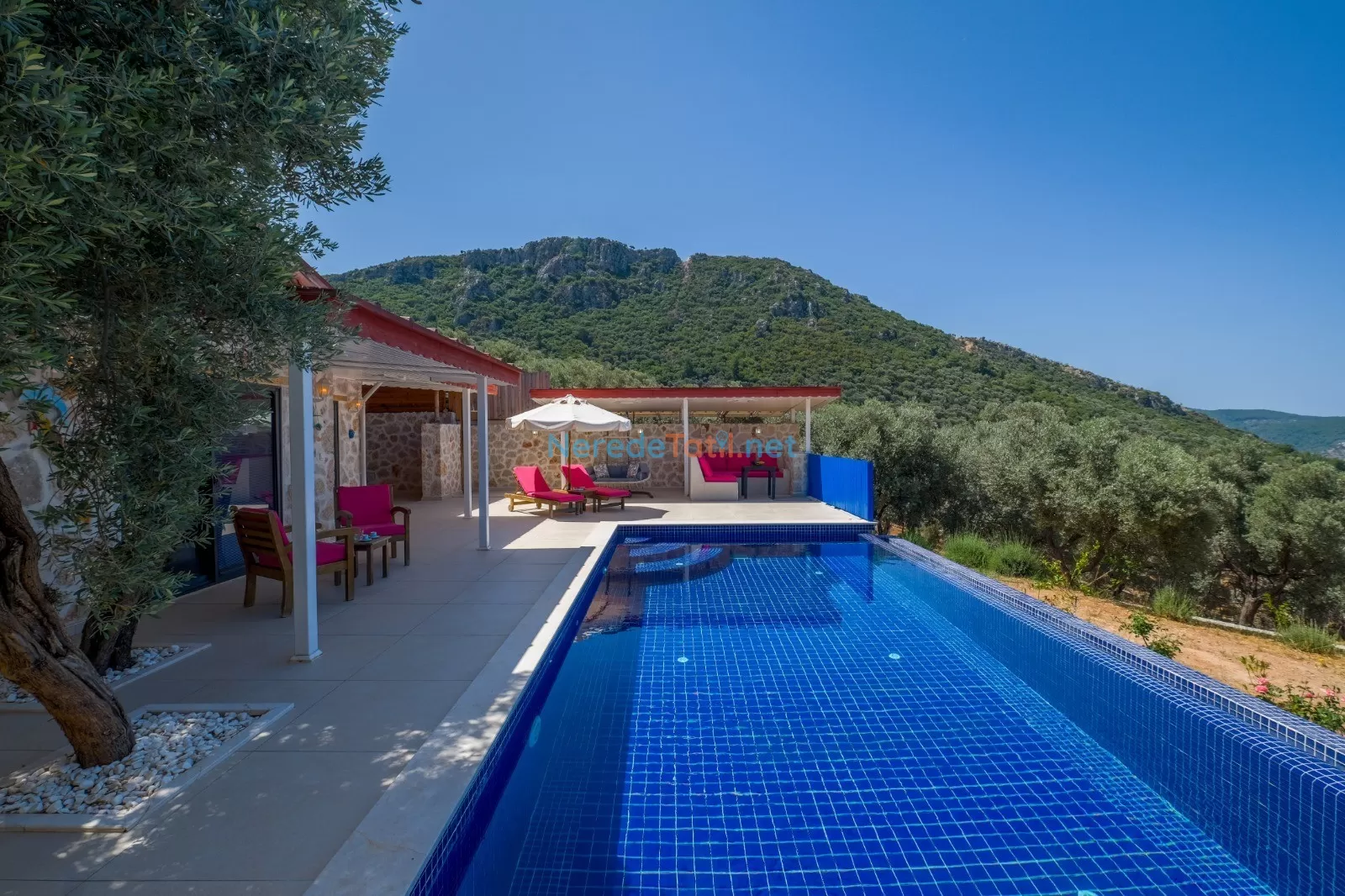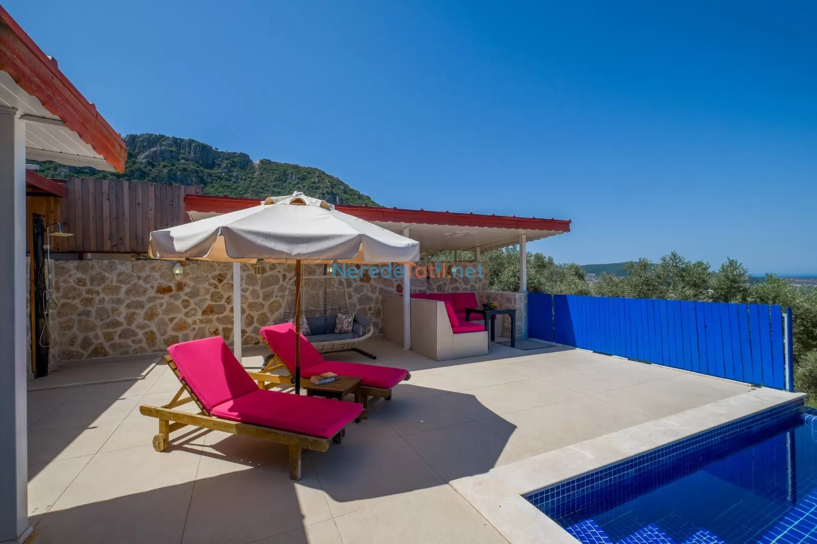 Villanın özel havuzu 4 metre genişliğinde, 8 metre uzunluğunda ve 1.55 metre derinliğindedir. Havuzun korunaklı yapısı, muhafazakar çiftler için ideal bir tatil imkanı sunmaktadır. Ayrıca, villanın çevresindeki doğa manzarası, huzurlu ve dingin bir ortam yaratmaktadır.