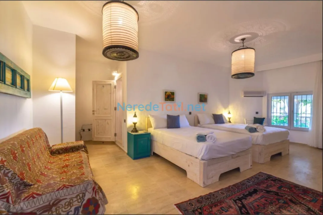 Kızıltaş bölgesinde yer alan bu ultra lüks villa, 10 kişilik konuk kapasitesiyle aileler ve arkadaş grupları için mükemmel bir tatil fırsatı sunuyor. Villada 5 yatak odası ve 5 banyo bulunmakta, böylece tüm misafirlerinizin konforu sağlanıyor. Üç adet çift kişilik yatak ve dört adet tek kişilik yatak ile geniş konaklama imkanlarına sahipsiniz.