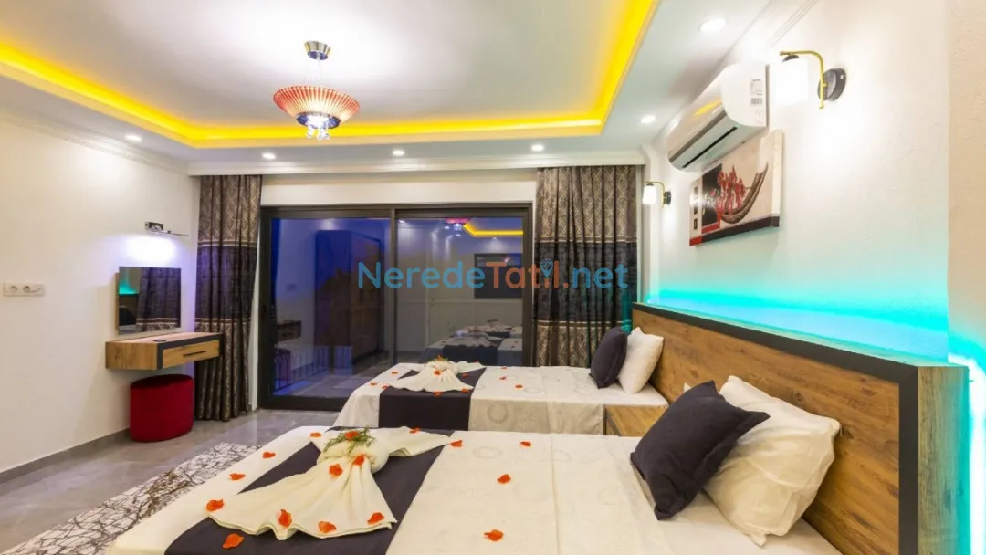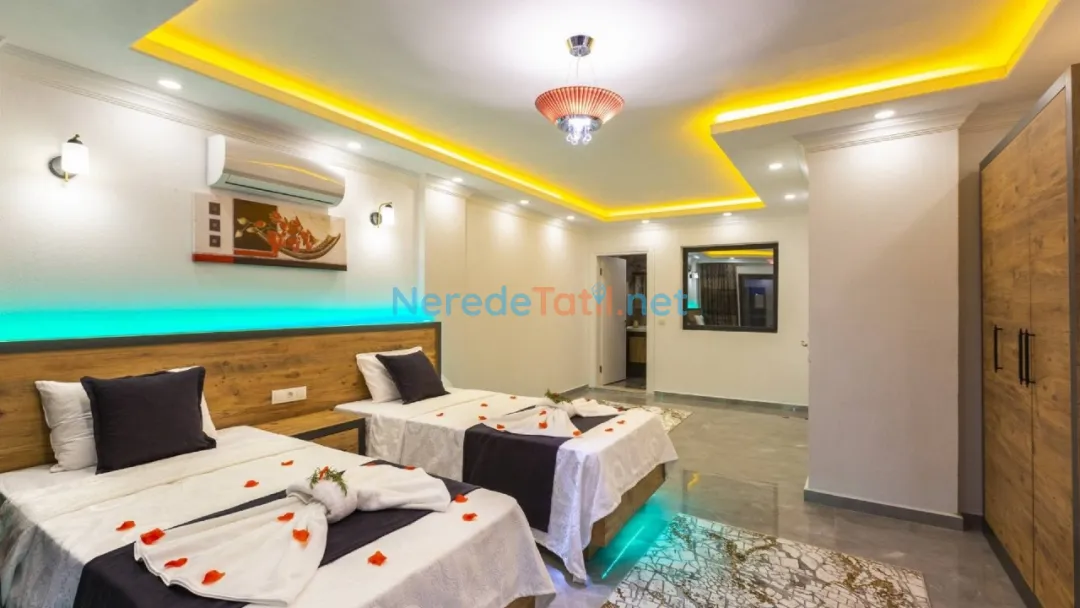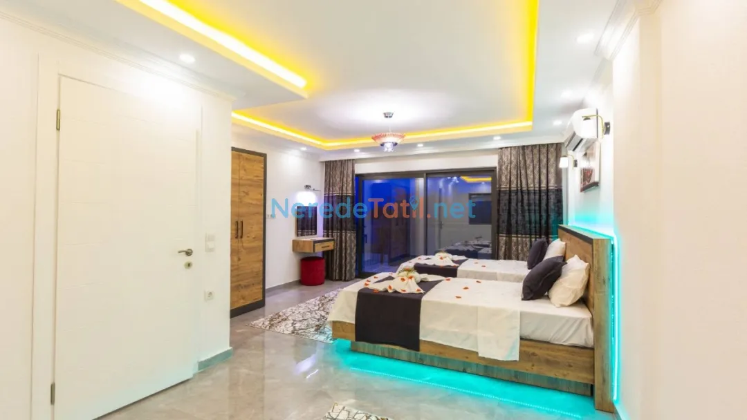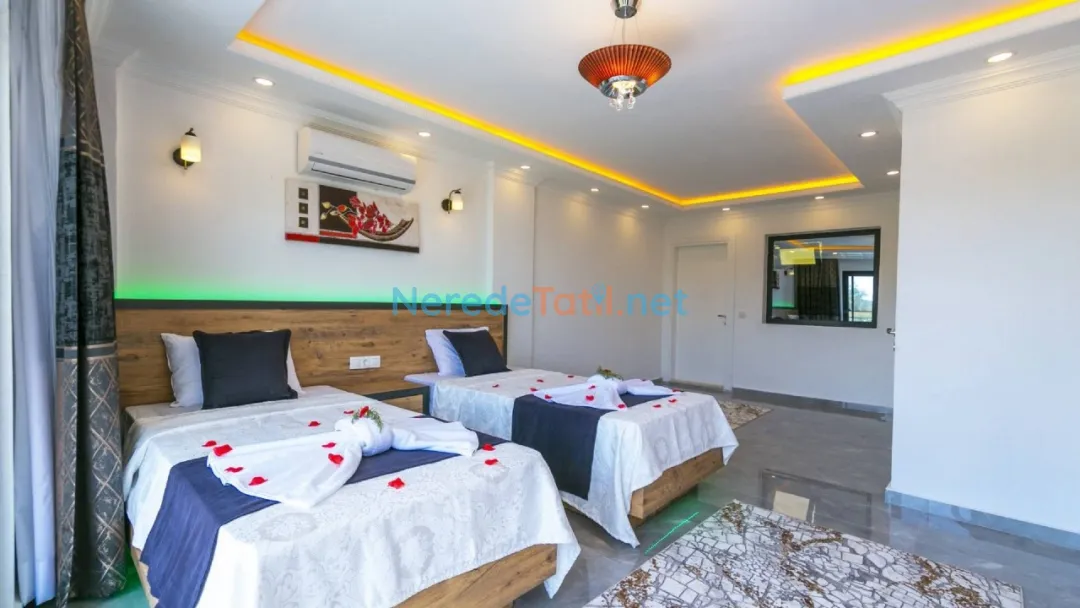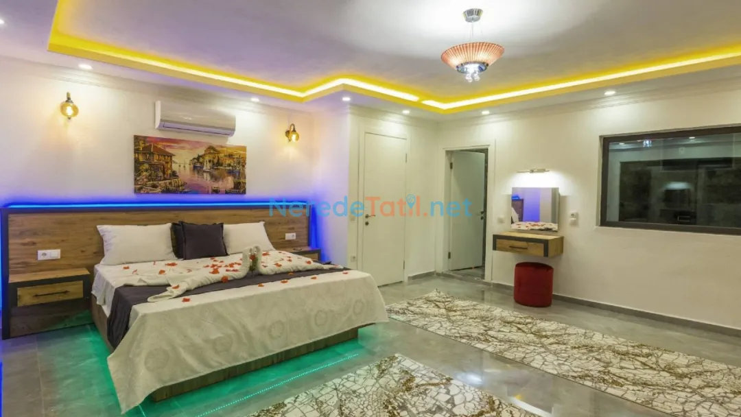 Akdeniz'in büyüleyici köylerinden İslamlar'da yer alan bu lüks villa, balayı çiftleri ve huzurlu bir tatil arayanlar için ideal bir seçenek sunuyor. Villada, dört kişilik konaklama kapasitesi ile iki yatak odası ve iki banyo bulunmaktadır. Bir çift kişilik yatak ve iki tek kişilik yatak düzeni, konforlu bir konaklama sağlıyor.