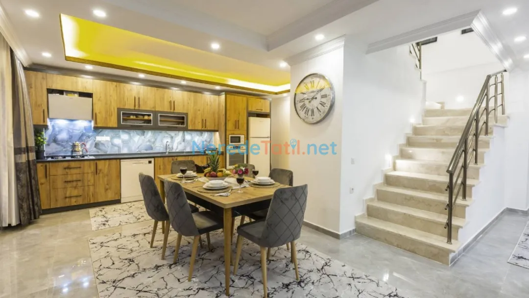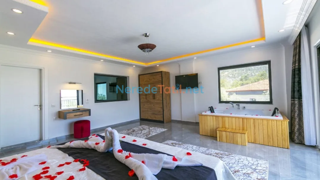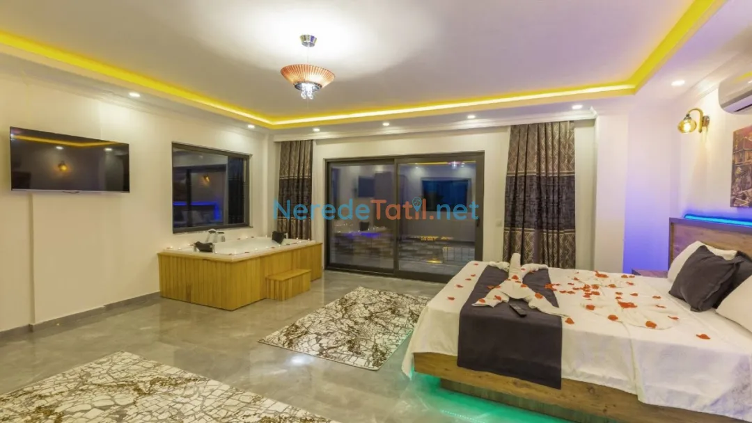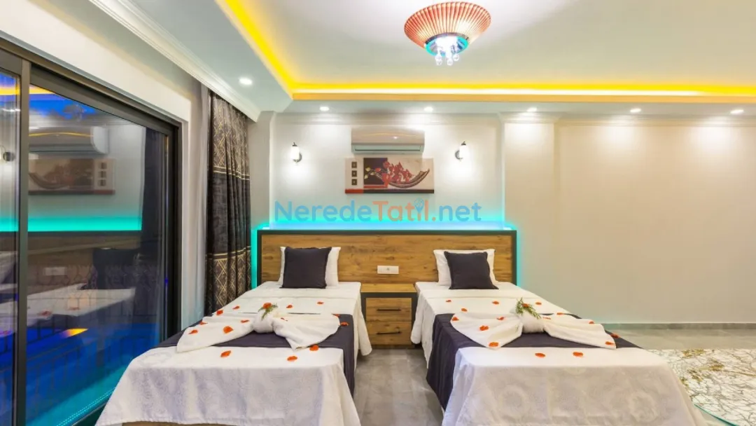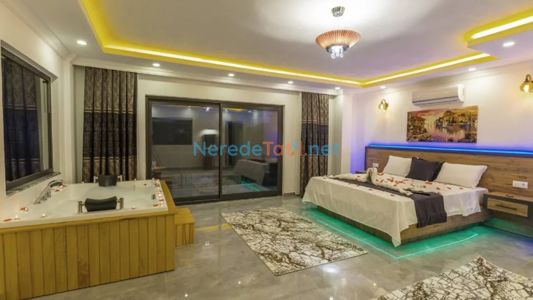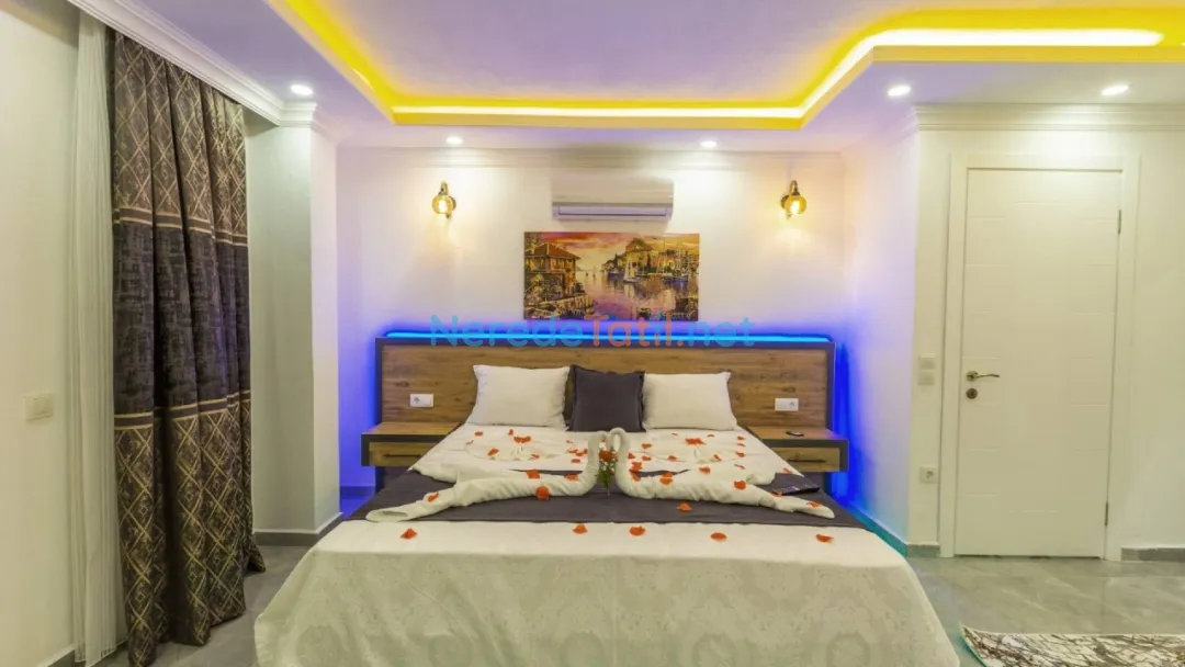 Akdeniz'in büyüleyici köylerinden İslamlar'da yer alan bu lüks villa, balayı çiftleri ve huzurlu bir tatil arayanlar için ideal bir seçenek sunuyor. Villada, dört kişilik konaklama kapasitesi ile iki yatak odası ve iki banyo bulunmaktadır. Bir çift kişilik yatak ve iki tek kişilik yatak düzeni, konforlu bir konaklama sağlıyor.