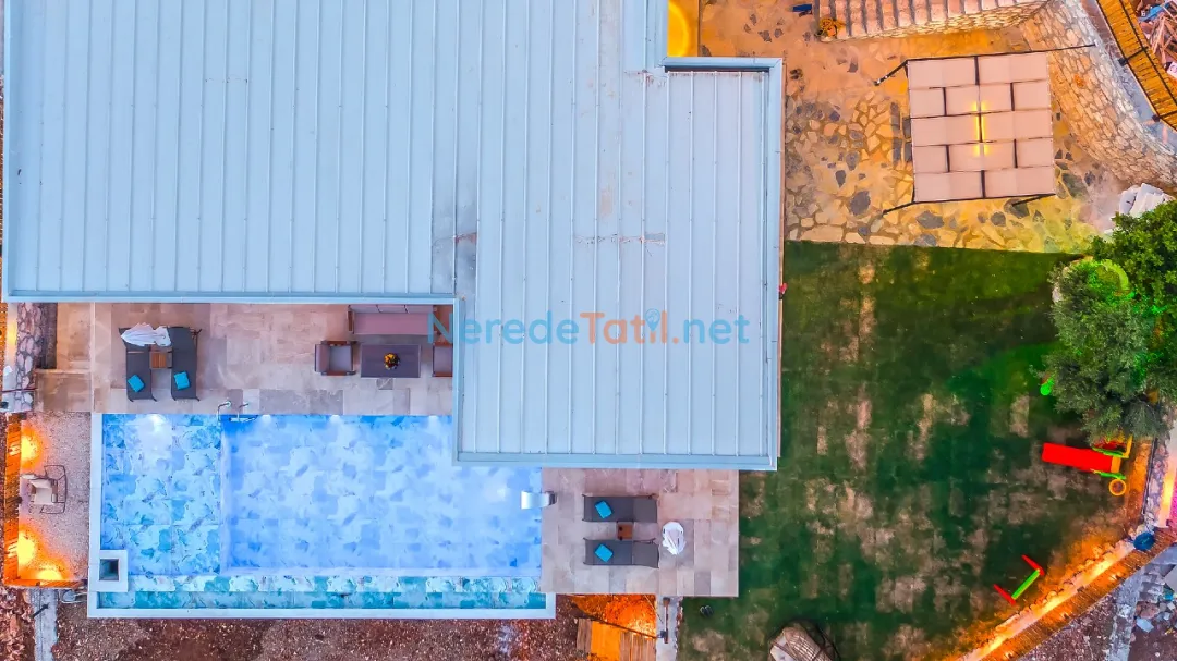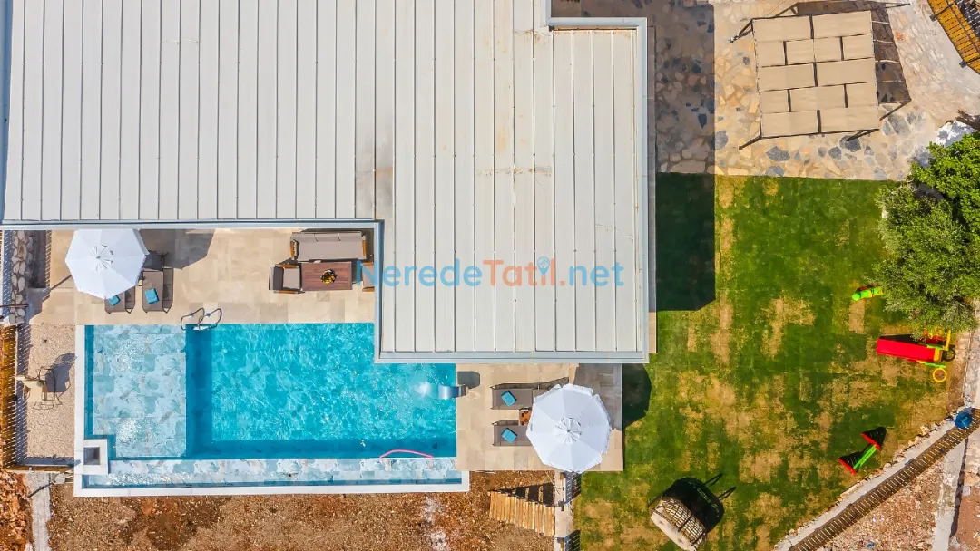 Villanın geniş yüzme havuzu, 4 metre genişliğinde ve 8 metre uzunluğunda olup, 1.5 metre derinliğindedir. Korunaklı havuz özelliği sayesinde misafirler, özgürce yüzmenin keyfini çıkarabilirler. Ayrıca jakuzi ile tatilinize lüks bir dokunuş katabilirsiniz.
