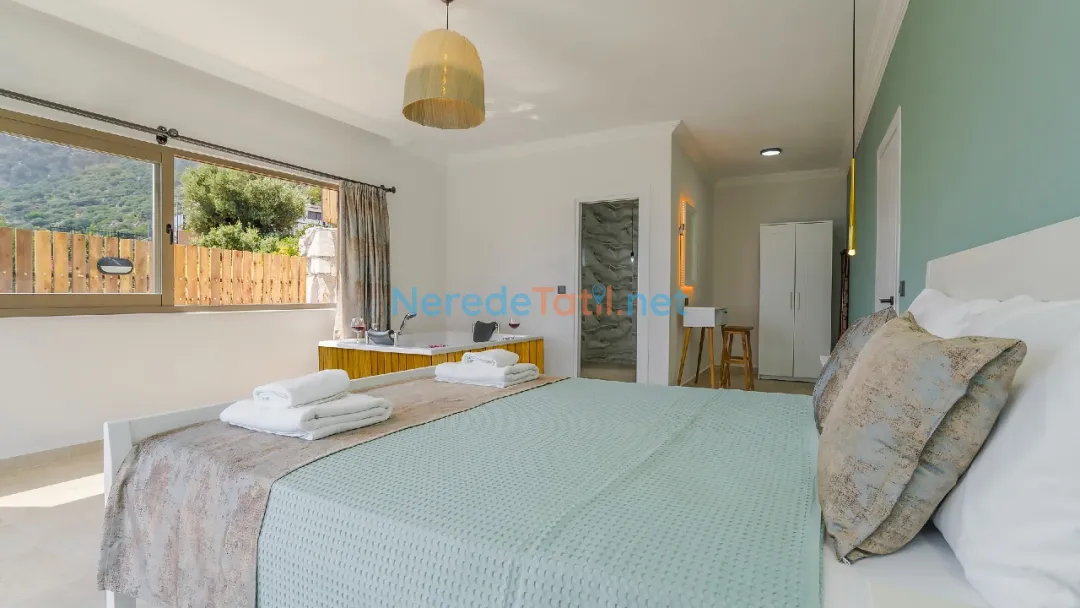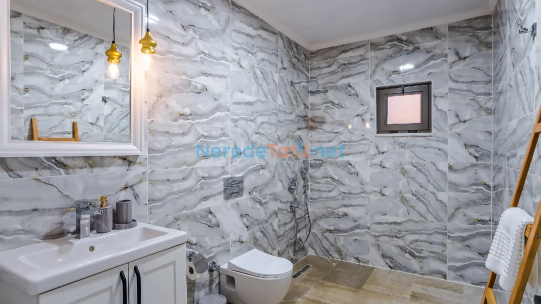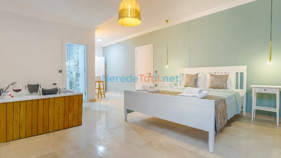Gökseki'nin eşsiz doğası ve deniz manzarasıyla çevrili bu lüks villa, konfor ve huzuru bir arada sunuyor. İki yatak odası ve iki banyosu ile toplamda dört kişilik konaklama kapasitesine sahip olan villa, özellikle balayı çiftleri için ideal bir konumda. Her iki odada da çift kişilik yatak bulunan villa, misafirlerine özel bir tatil deneyimi yaşatıyor.
