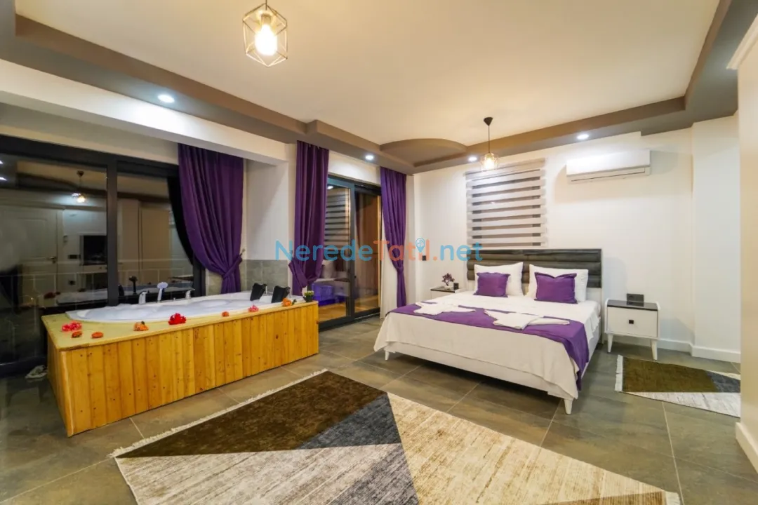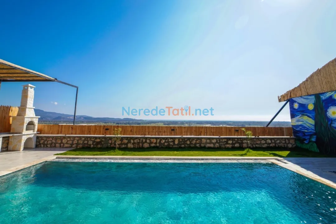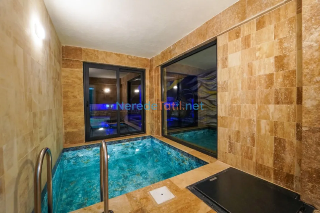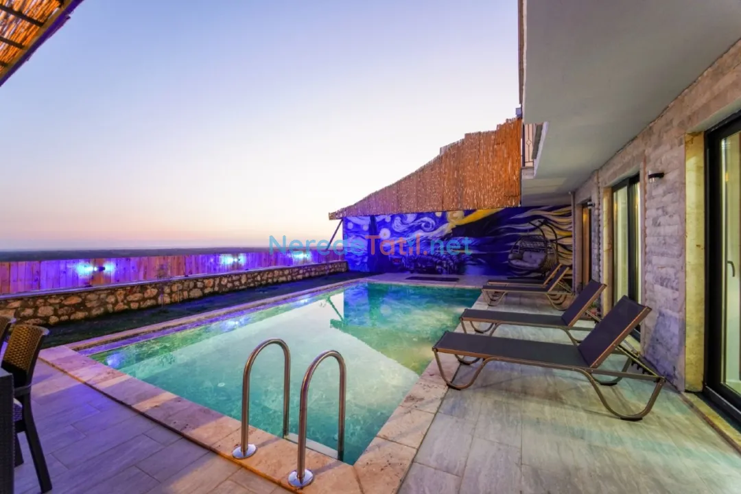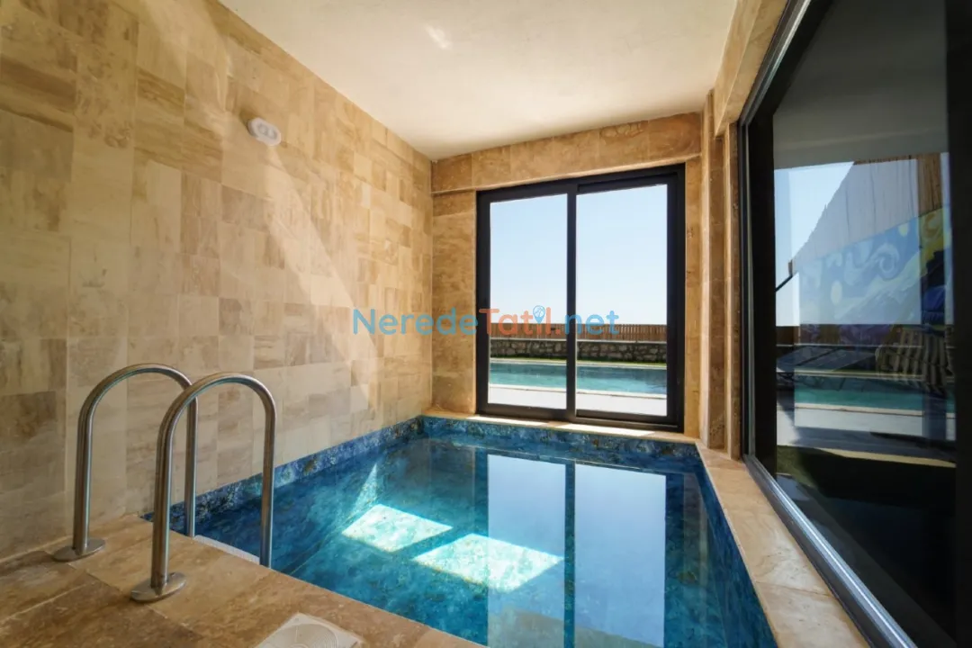 Villanın en dikkat çekici özelliklerinden biri, korunaklı ve özel yüzme havuzudur. 4 metre eninde, 10 metre boyunda ve 1.55 metre derinliğinde olan bu havuz, mahremiyet arayan misafirler için idealdir. Ayrıca ısıtmalı havuz ve jakuzi keyfi de sunan villa, yılın her döneminde tatilin tadını çıkarmanıza olanak tanır.