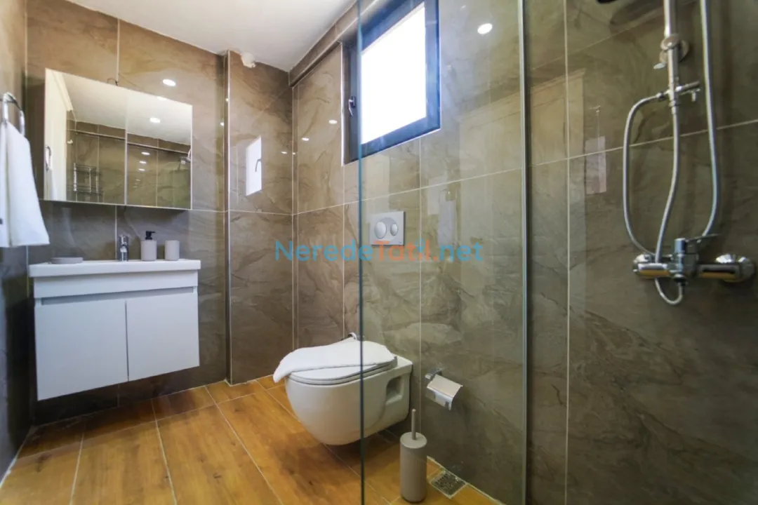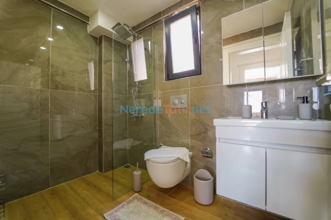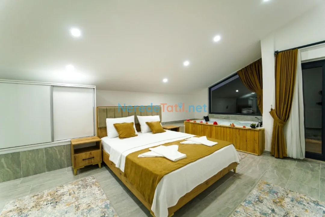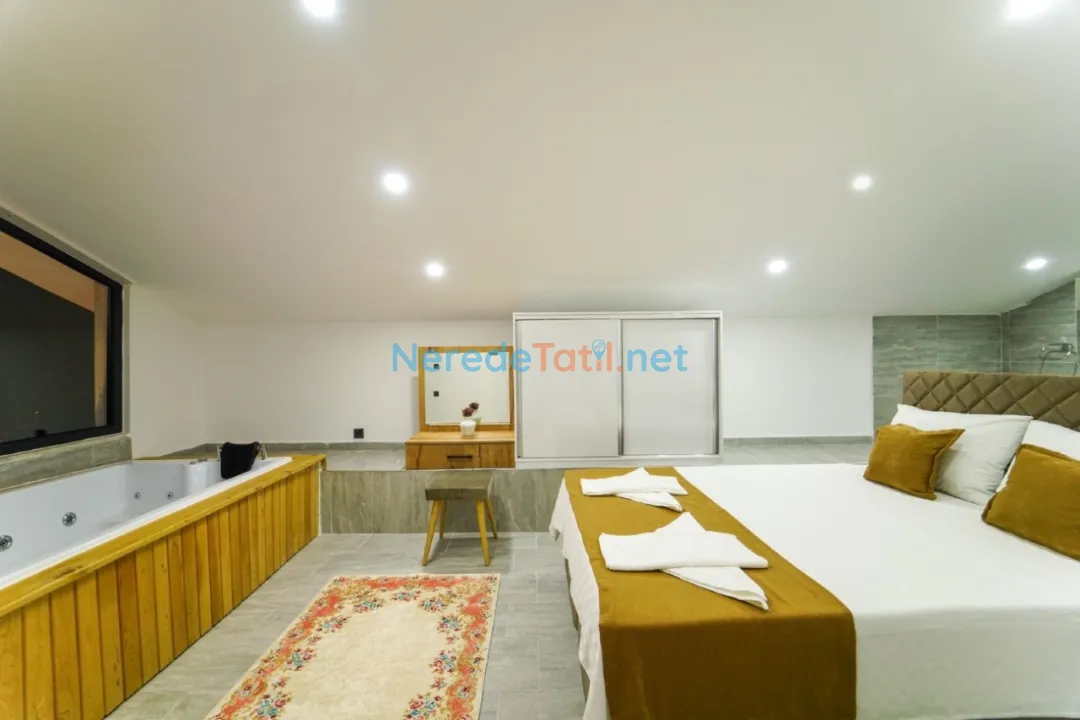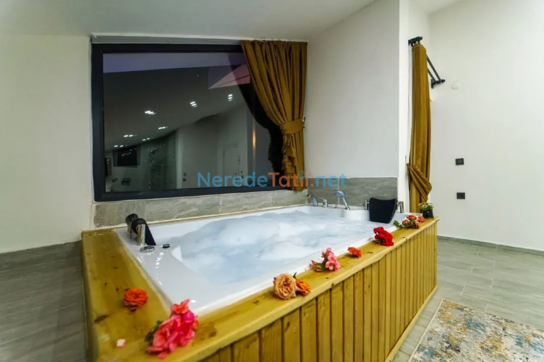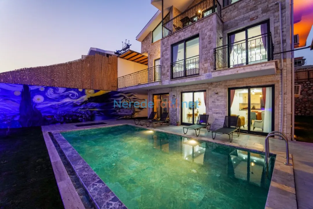 Villanın en dikkat çekici özelliklerinden biri, korunaklı ve özel yüzme havuzudur. 4 metre eninde, 10 metre boyunda ve 1.55 metre derinliğinde olan bu havuz, mahremiyet arayan misafirler için idealdir. Ayrıca ısıtmalı havuz ve jakuzi keyfi de sunan villa, yılın her döneminde tatilin tadını çıkarmanıza olanak tanır.