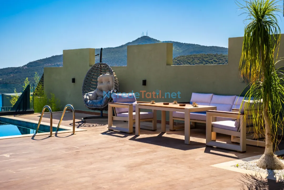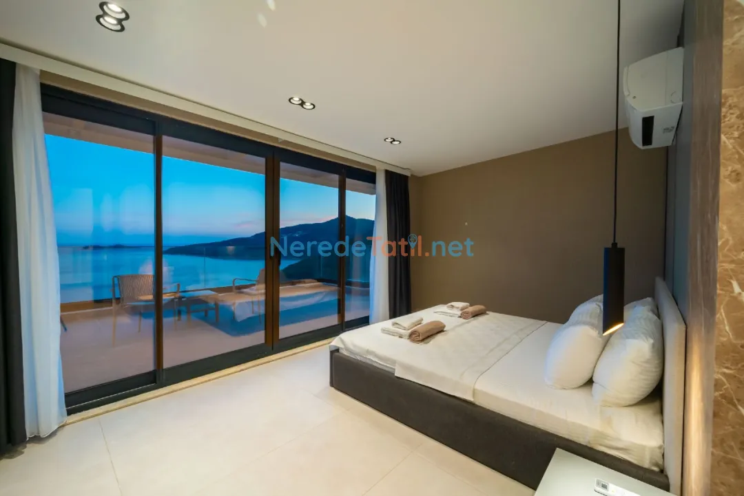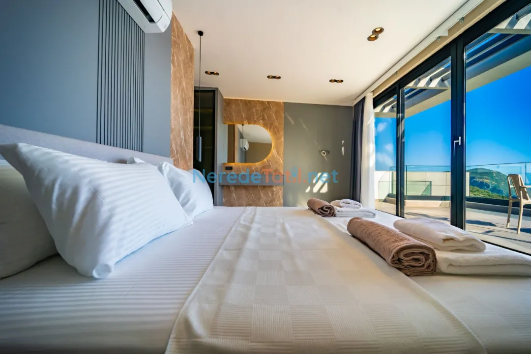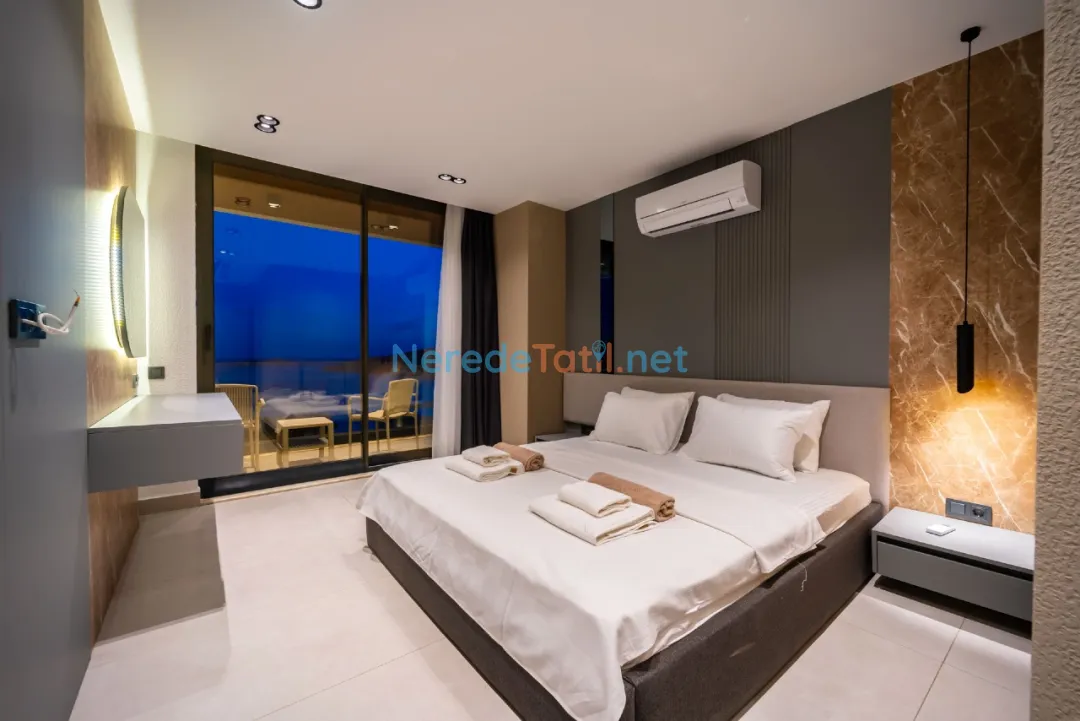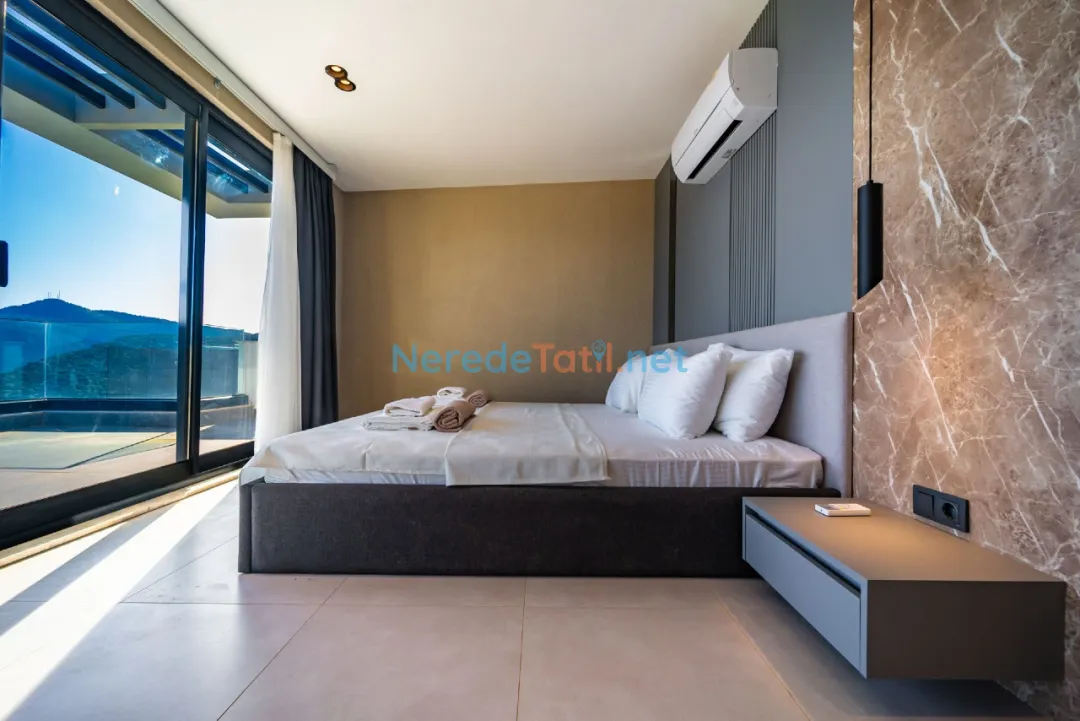 Lüks detaylarla öne çıkan bu villa, Kalkan merkeze, plaja ve restoranlara yalnızca 1 km mesafededir. Bu sayede hem şehrin canlı atmosferine yakın olabilir hem de huzurlu bir tatil geçirebilirsiniz.