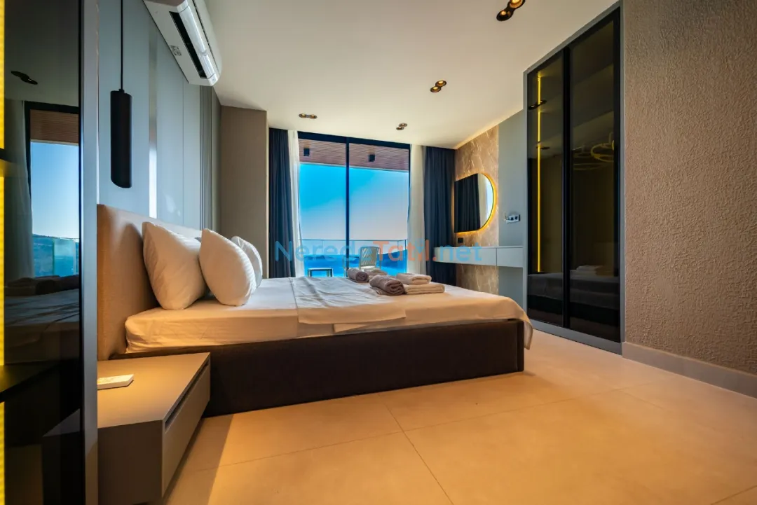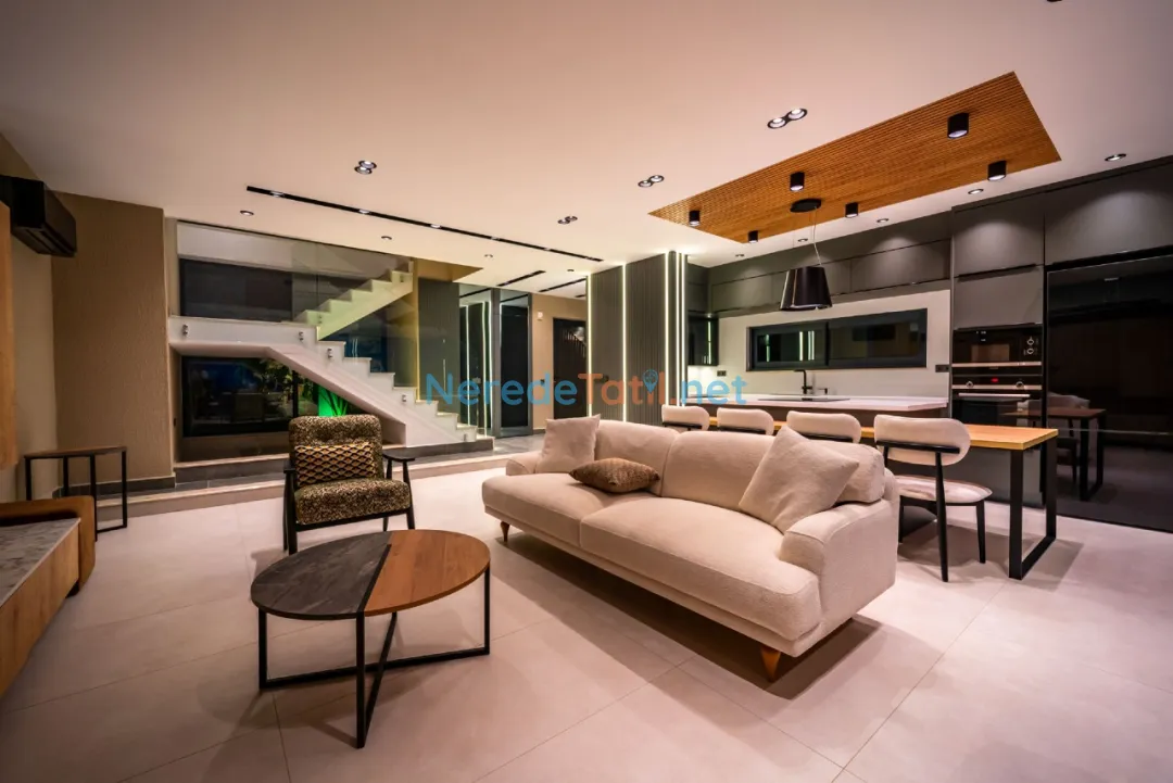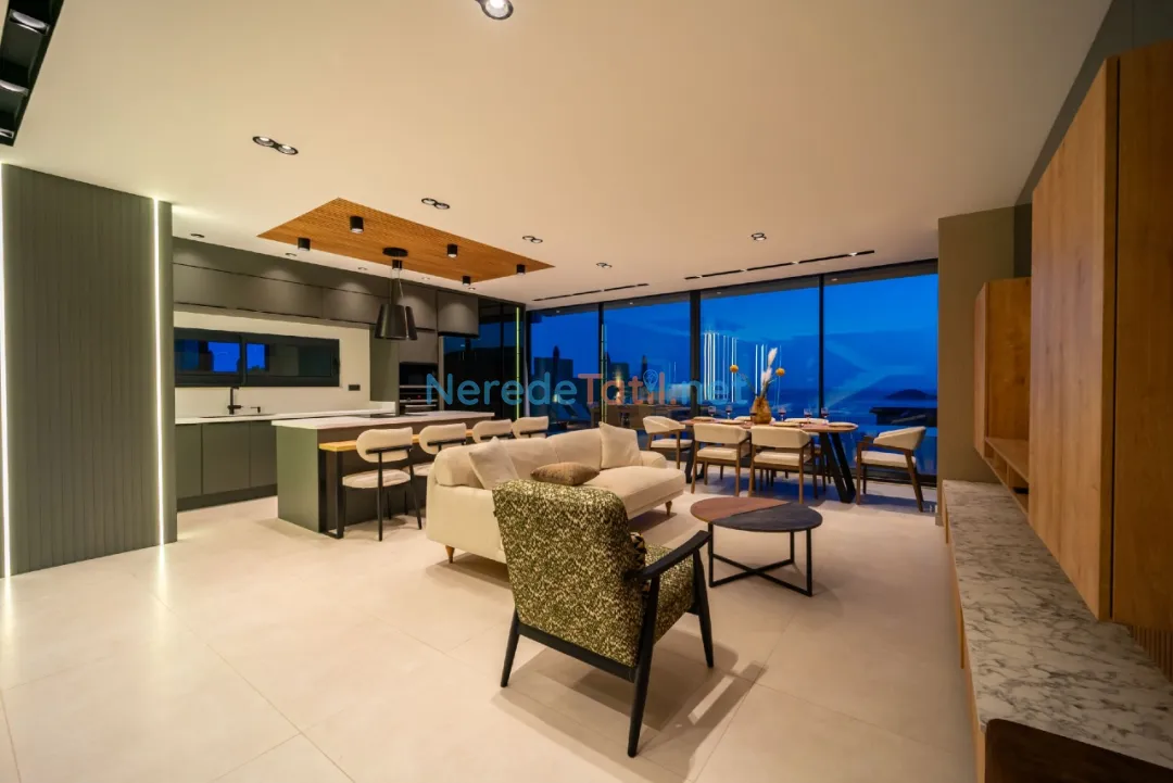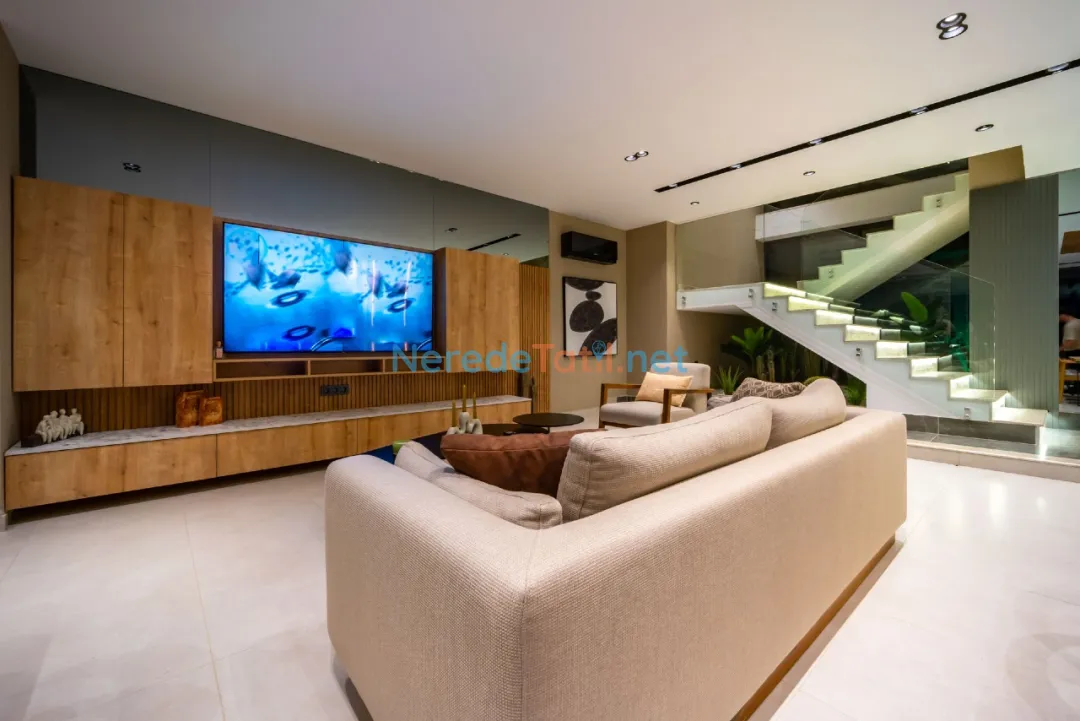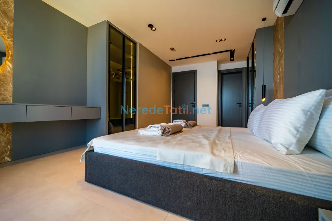 Lüks detaylarla öne çıkan bu villa, Kalkan merkeze, plaja ve restoranlara yalnızca 1 km mesafededir. Bu sayede hem şehrin canlı atmosferine yakın olabilir hem de huzurlu bir tatil geçirebilirsiniz.