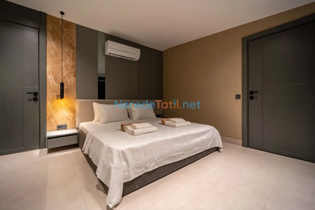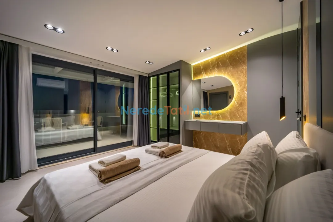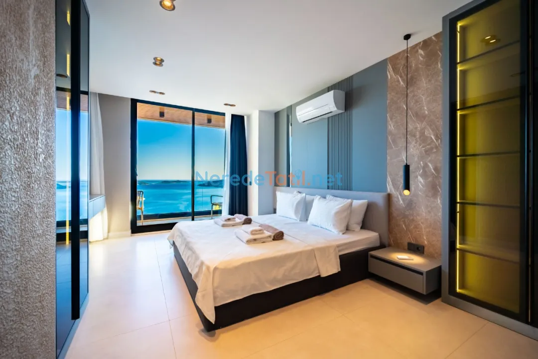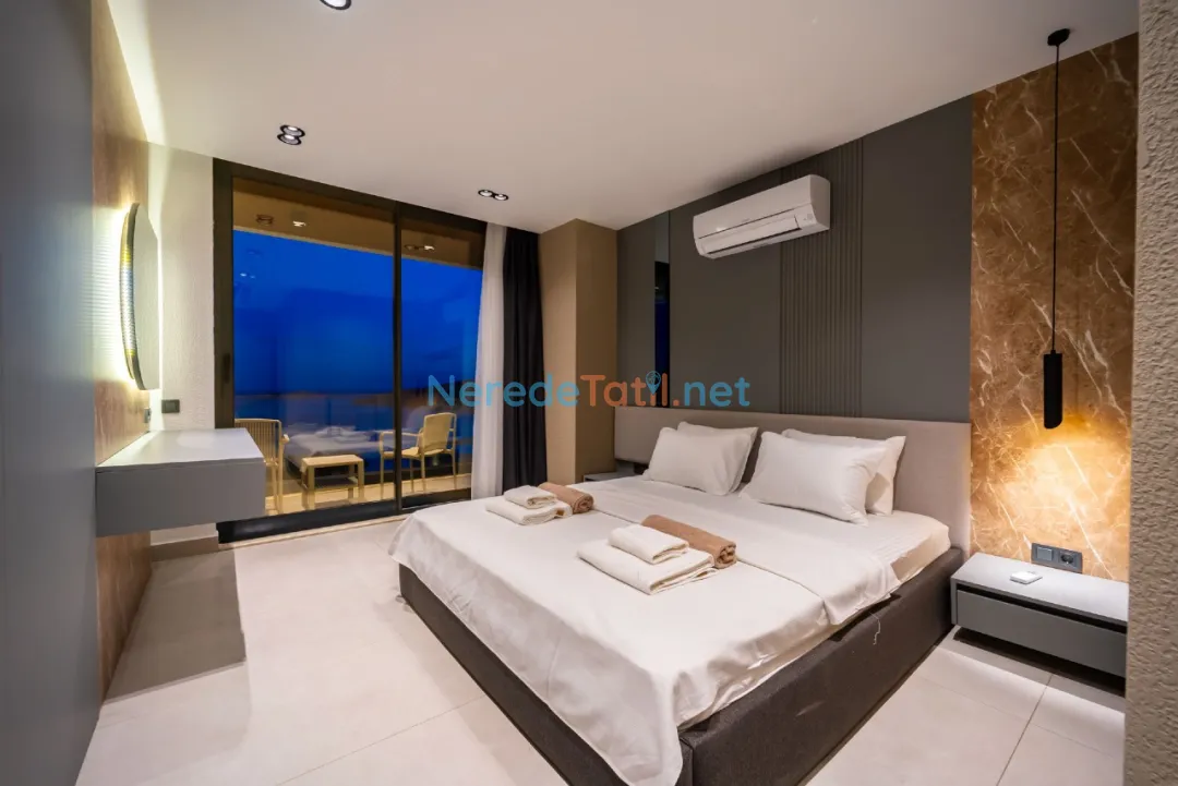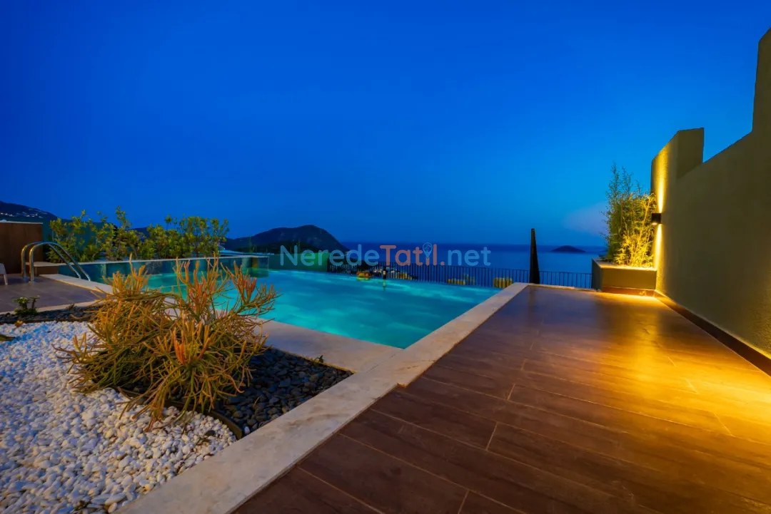 Kalkan'ın büyüleyici atmosferinde yer alan bu lüks villa, tatilciler için eşsiz bir konfor sunuyor. Özel yüzme havuzu ile serinleyebilir, 4x6 metre boyutlarındaki havuzun keyfini çıkarabilirsiniz. Deniz manzarasının tadını çıkarabileceğiniz bu villa, balayı çiftleri için de mükemmel bir seçenek.