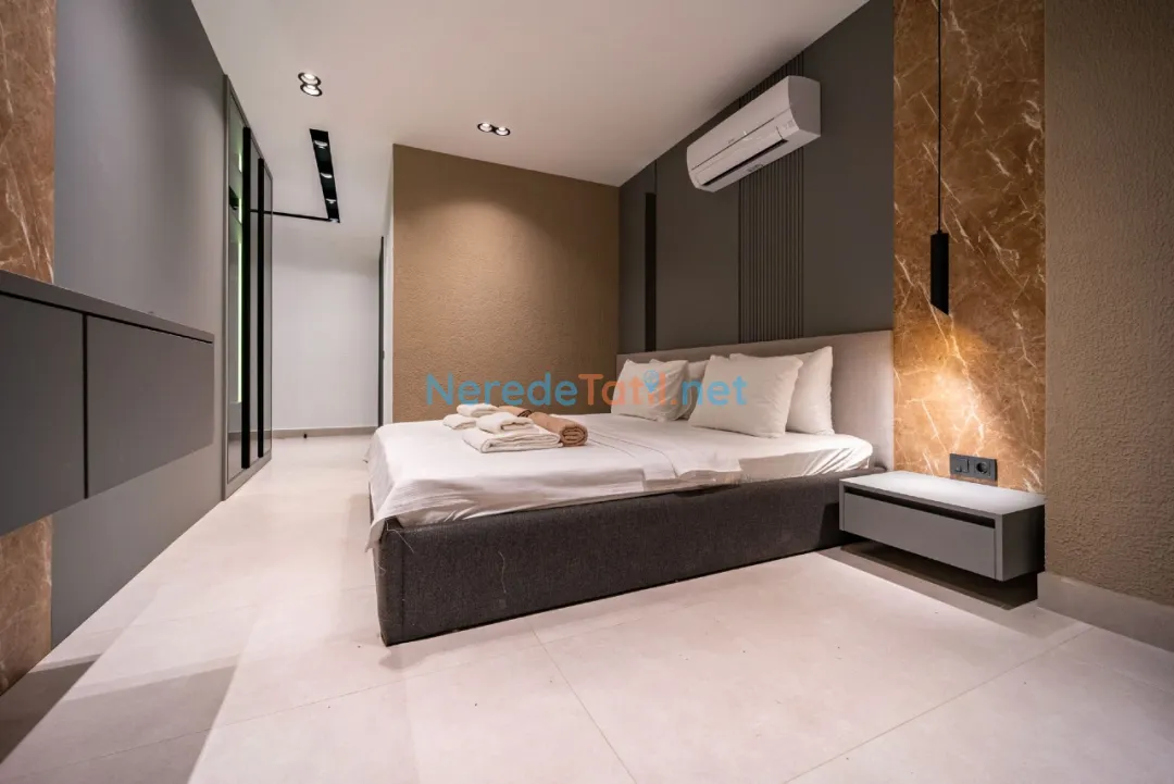Üç yatak odası ve üç banyosu bulunan villa, altı kişilik konaklama kapasitesine sahiptir. Her odada çift kişilik yatak bulunmakta olup, konforunuz için her detay düşünülmüştür. Villanın bahçesinde BBQ - mangal yapma imkanı ve doğa manzarası eşliğinde huzurlu anlar sizi bekliyor.
