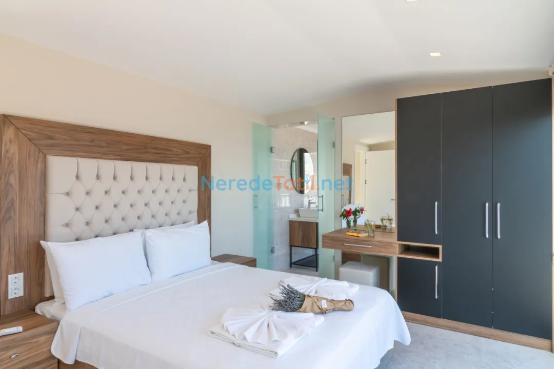Kalkan'ın büyüleyici doğasında, deniz manzaralı ve lüks bir tatil deneyimi sunan bu villa, konforlu bir konaklama imkanı sunmaktadır. Beş yatak odası ve beş banyosu ile 10 kişiye kadar konuk ağırlayabilen villa, dört çift kişilik ve iki tek kişilik yatak ile donatılmıştır. Burada, özel yüzme havuzunun keyfini çıkarabilir, modern yaşamın stresinden uzaklaşabilirsiniz. Havuzun boyutları 7x10 metre olup, 1.55 metre derinliğindedir.