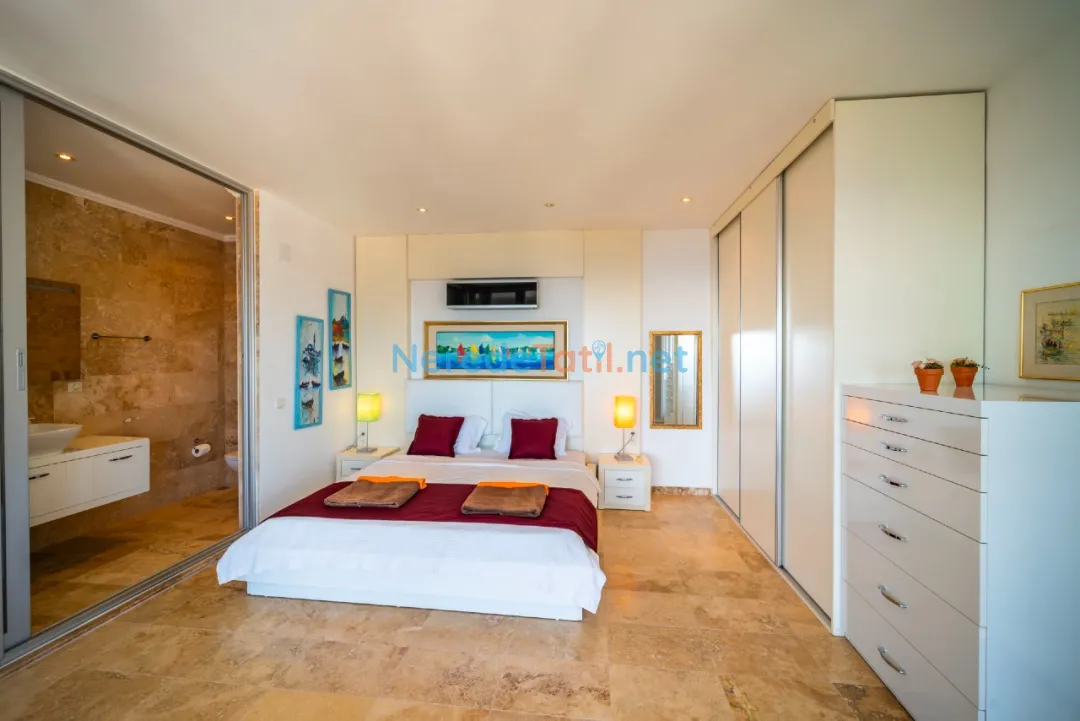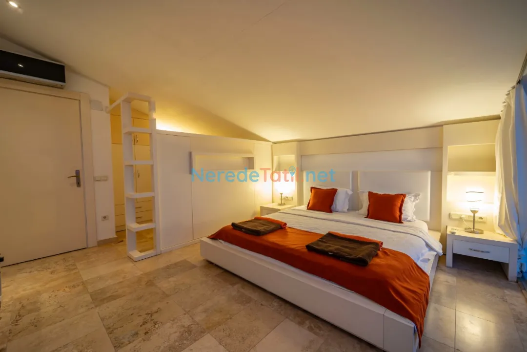 Villamız 3 yatak odası ve 3 banyo ile 6 kişilik bir konaklama kapasitesine sahiptir. Her odada çift kişilik yatak bulunmaktadır. Modern ve şık iç mekan tasarımı, tatilinizi huzurlu ve konforlu bir şekilde geçirmenizi sağlar.