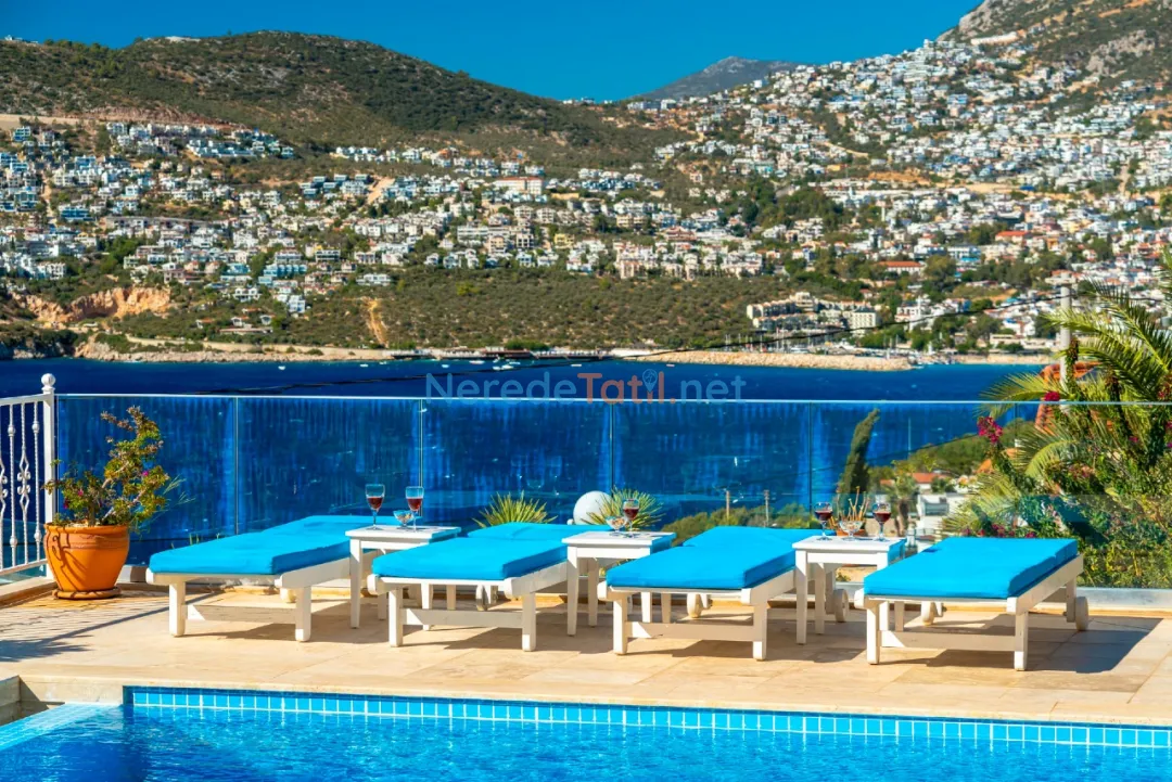 Kışla'da yer alan bu lüks tatil villası, sakinliği ve konforu bir arada sunuyor. Villanın özel yüzme havuzu 4 metre genişliğinde ve 5.6 metre uzunluğundadır, 1.65 metre derinliğiyle yüzme keyfini doruklara çıkarıyor.