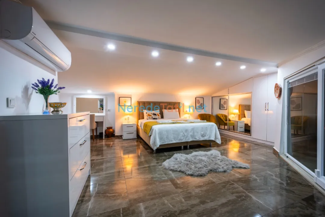Bunların yanı sıra, doğayla iç içe konumuyla misafirlerine huzurlu bir tatil imkanı sunan bu villa, kalabalıktan uzaklaşmak ve ailenizle ya da sevdiklerinizle sakin bir tatil geçirmek isteyenler için mükemmel bir seçenek.