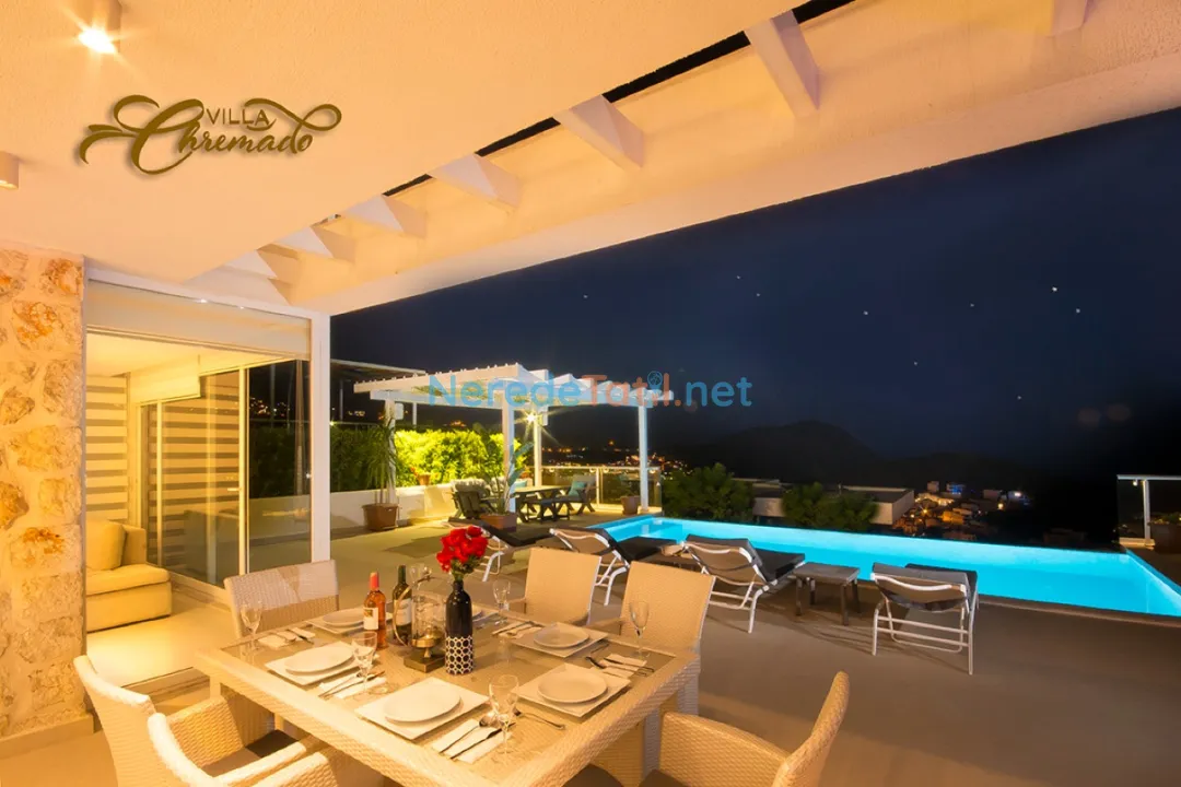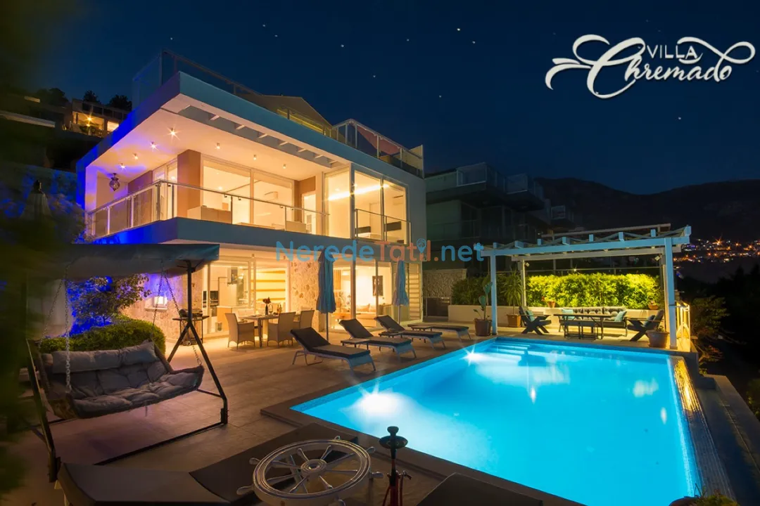 Kalkan'ın büyüleyici atmosferinde yer alan bu lüks villa, konuklarına unutulmaz bir tatil deneyimi sunuyor. Villada toplamda üç yatak odası ve üç banyo bulunmakta, ayrıca iki adet çift kişilik ve iki adet tek kişilik yatak ile altı kişilik konaklama kapasitesine sahiptir.