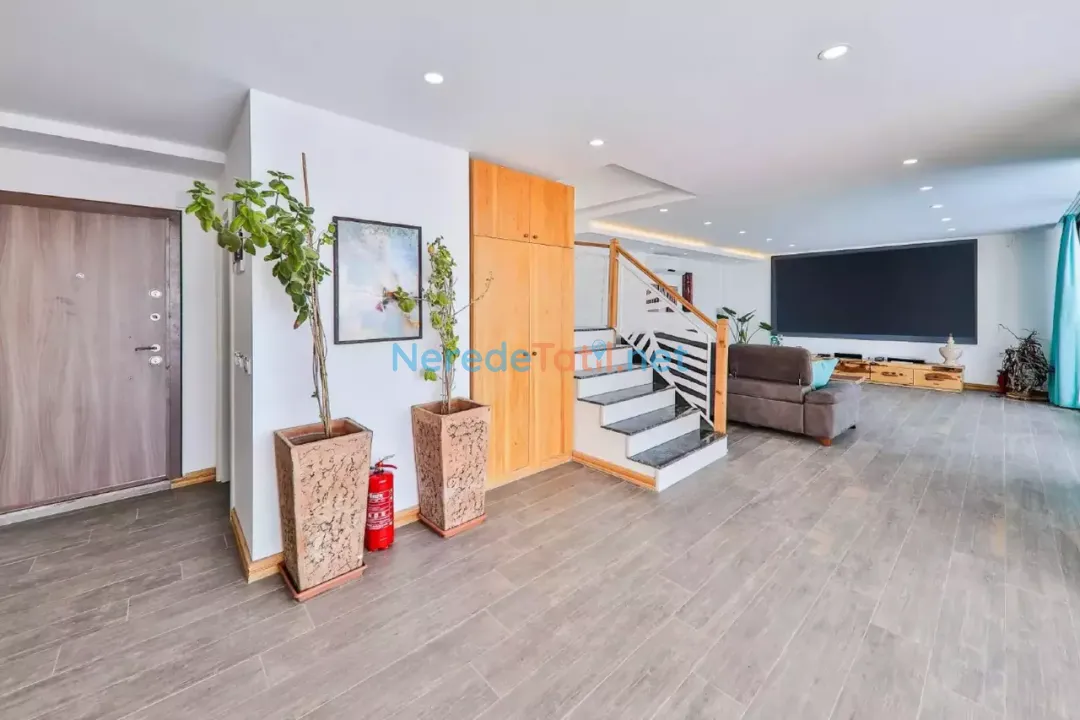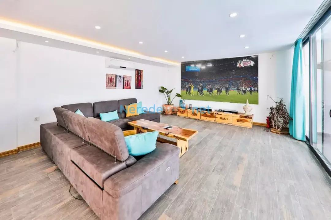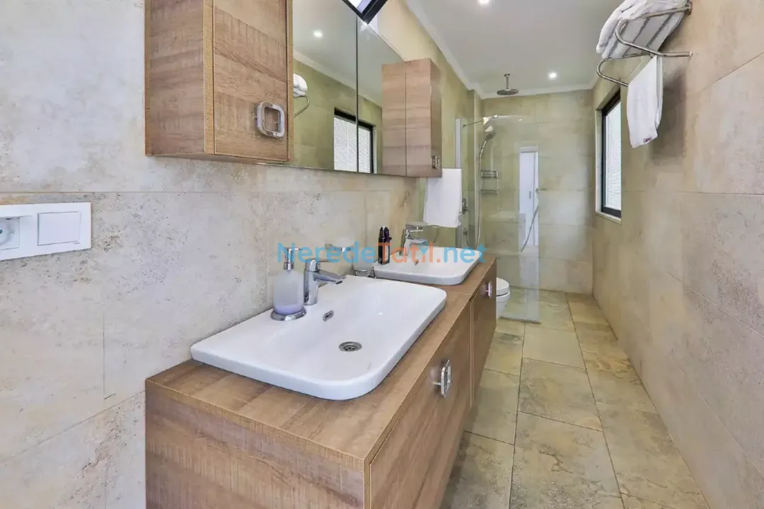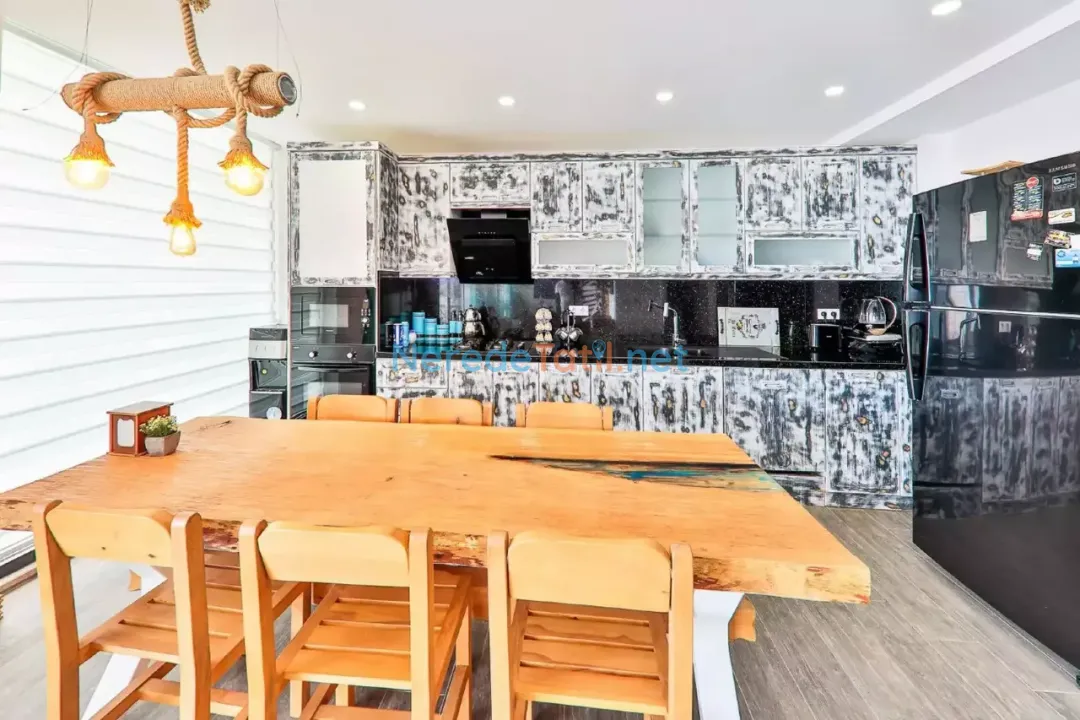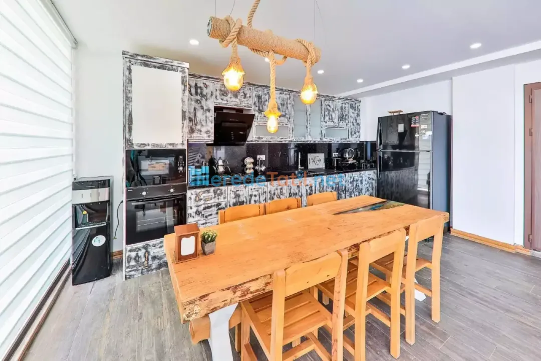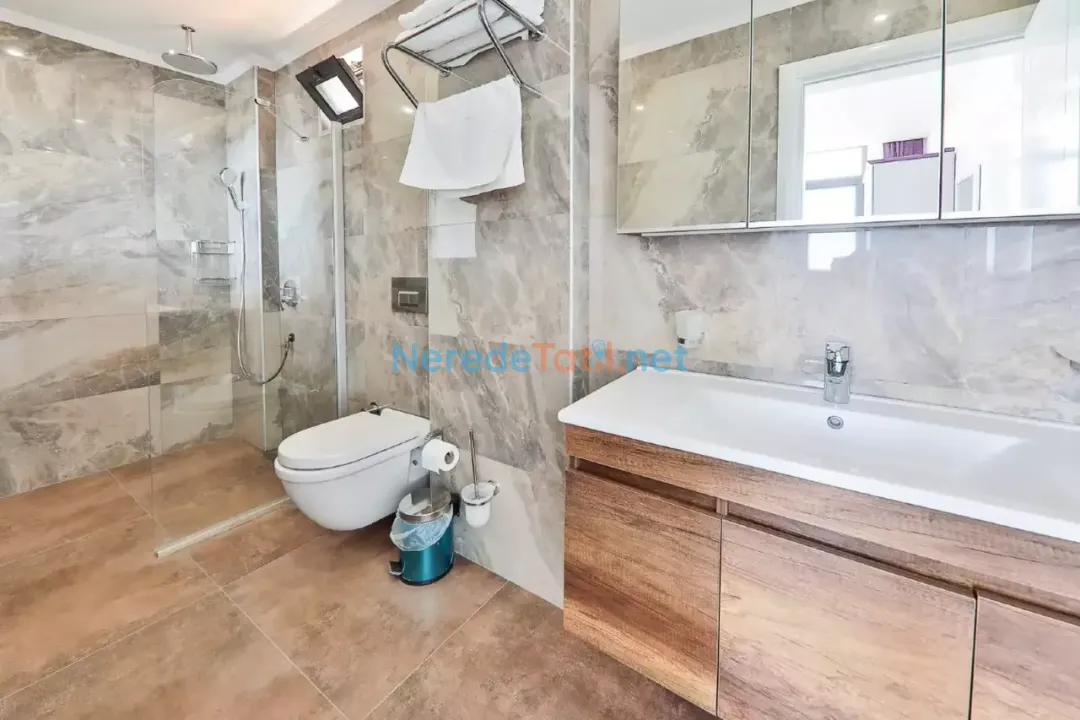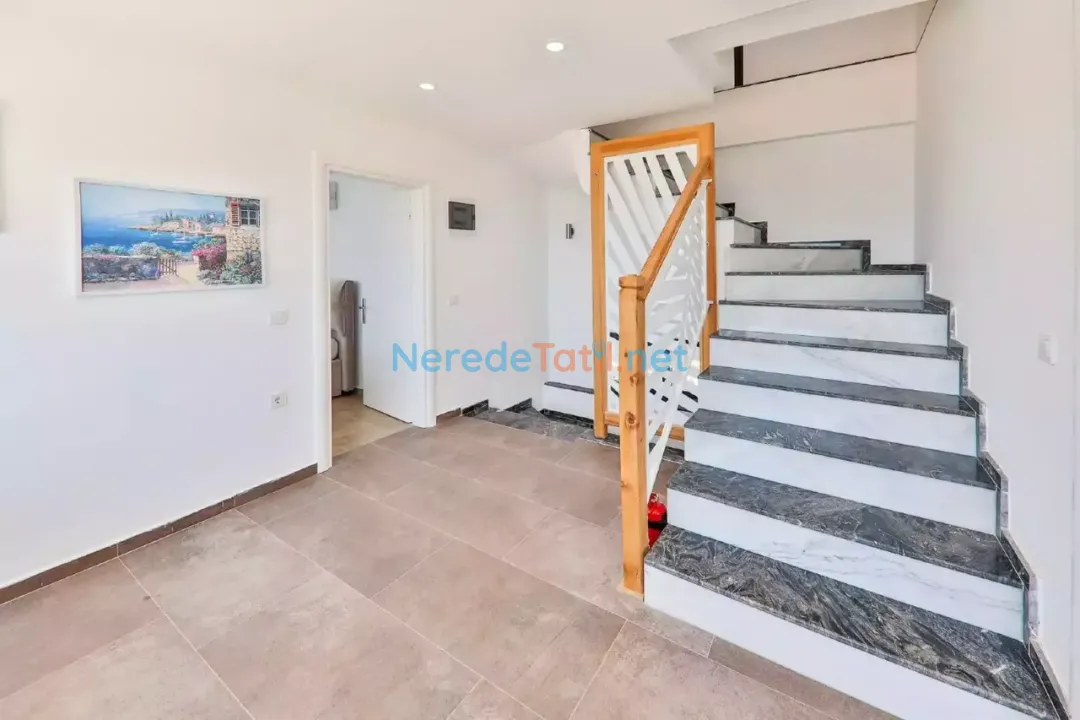 Villanın geniş kapasiteli, ferah iç mekanında 3 yatak odası ve 3 banyo bulunmaktadır. Çift kişilik iki yatak ve iki tek kişilik yatak, toplamda 6 kişilik kapasite sunar. Jakuzili banyo keyfi, tatilinize ekstra bir lüks katarken, Türk hamamı ise geleneksel bir rahatlama imkanı sağlar.