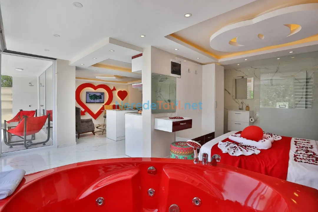 İslamlar'ın huzurlu atmosferinde konumlanmış bu özel villa, balayı çiftleri için mükemmel bir kaçış noktası sunuyor. Özel ve korunaklı havuz (3m x 8m x 1.5m) ile hem mahremiyetinizi koruyabilir hem de doğanın tadını çıkarabilirsiniz. Villanın doğa manzaralı olması sayesinde güneşin doğuşunu ve batışını en güzel şekilde izleyebilirsiniz.