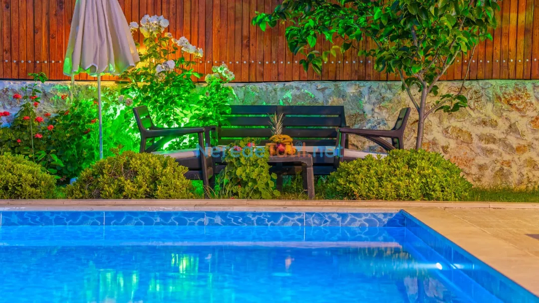 İslamlar'da yer alan bu lüks villa, misafirlerine doğa ile iç içe huzurlu bir tatil fırsatı sunmaktadır. Villamız, özel ve korunaklı havuzu ile hem güvenli hem de keyifli bir yüzme deneyimi sağlamaktadır. Havuzun genişliği 4 metre, uzunluğu ise 9 metredir ve derinliği 1.55 metre olarak tasarlanmıştır.