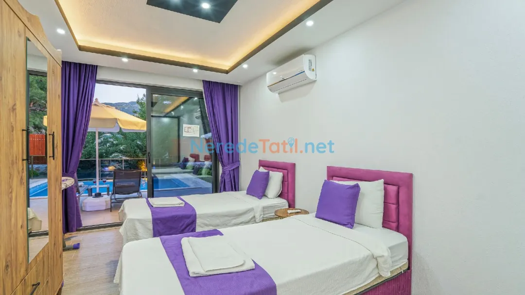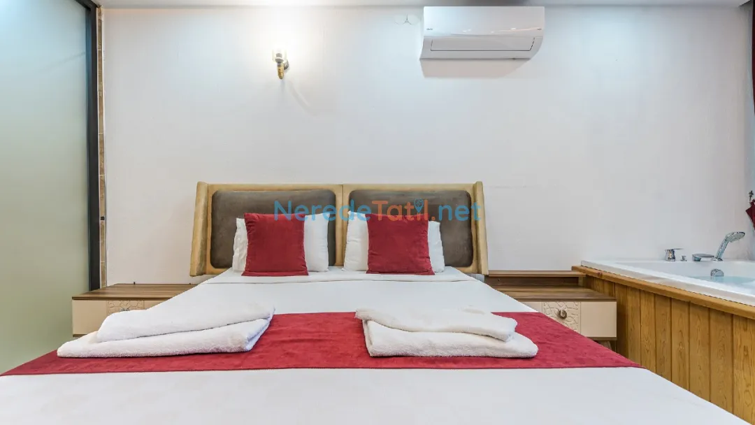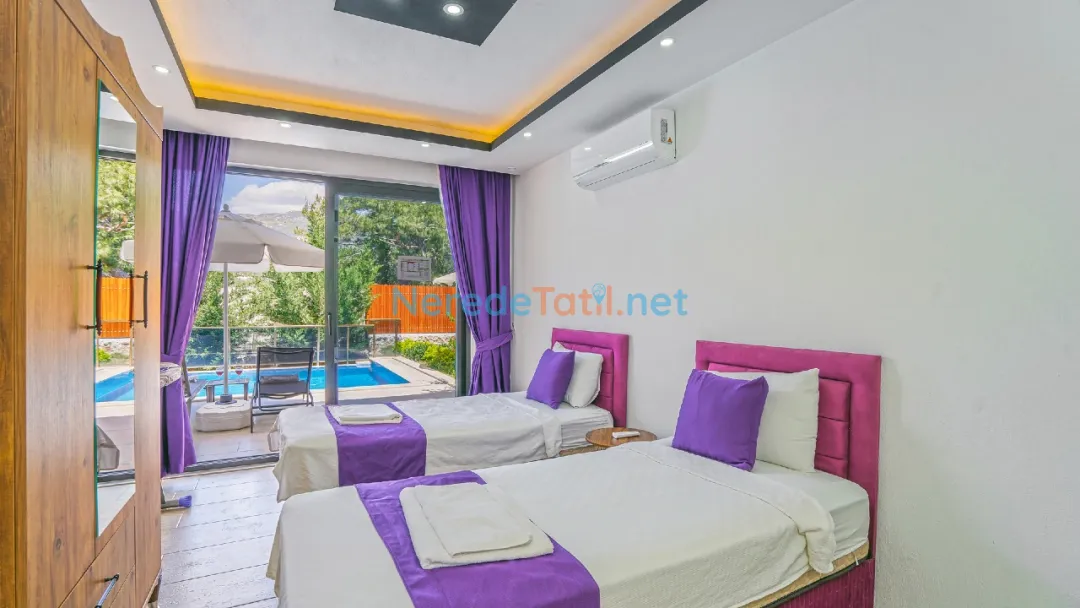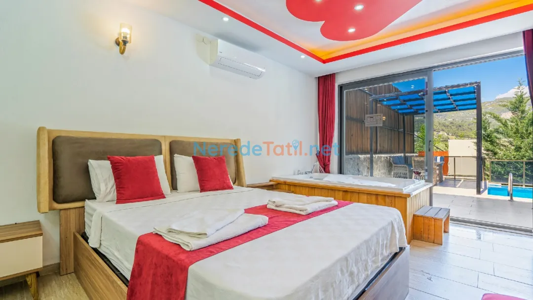 Toplamda 4 kişilik konaklama kapasitesine sahip olan villada, bir adet çift kişilik yatak ve iki adet tek kişilik yatak mevcuttur. İki banyosu bulunan villa, konforlu bir konaklama imkanı sunar. Balayı çiftleri için mükemmel bir seçenek olan bu villa, jakuzisi ile de ekstra rahatlık sağlamaktadır.
