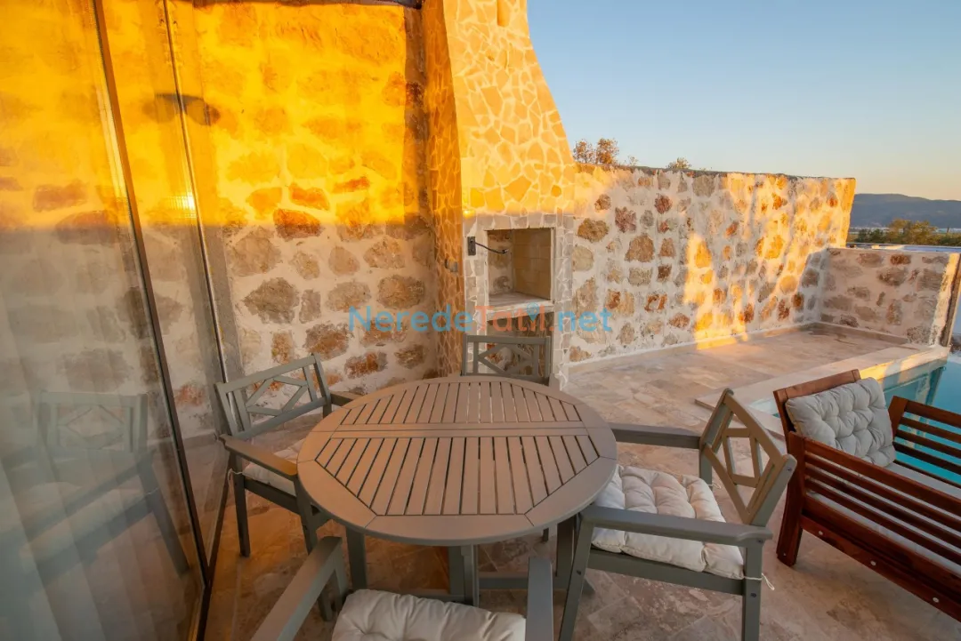 Çayköy'ün huzurlu atmosferinde, balayı çiftlerine uygun lüks ve ekonomik bir tatil deneyimi sunan bu villa, özel havuz ve doğa manzarası ile dikkat çekiyor. Villa, korunaklı havuz alanı sayesinde muhafazakâr konuklar için de ideal bir seçimdir. 3.5 metre genişliğe ve 6.5 metre uzunluğa sahip olan havuzda huzur içinde vakit geçirebilirsiniz. Ayrıca, villa barbekü keyfi yapabileceğiniz bir ortam sunmaktadır.