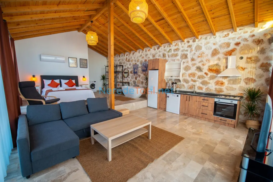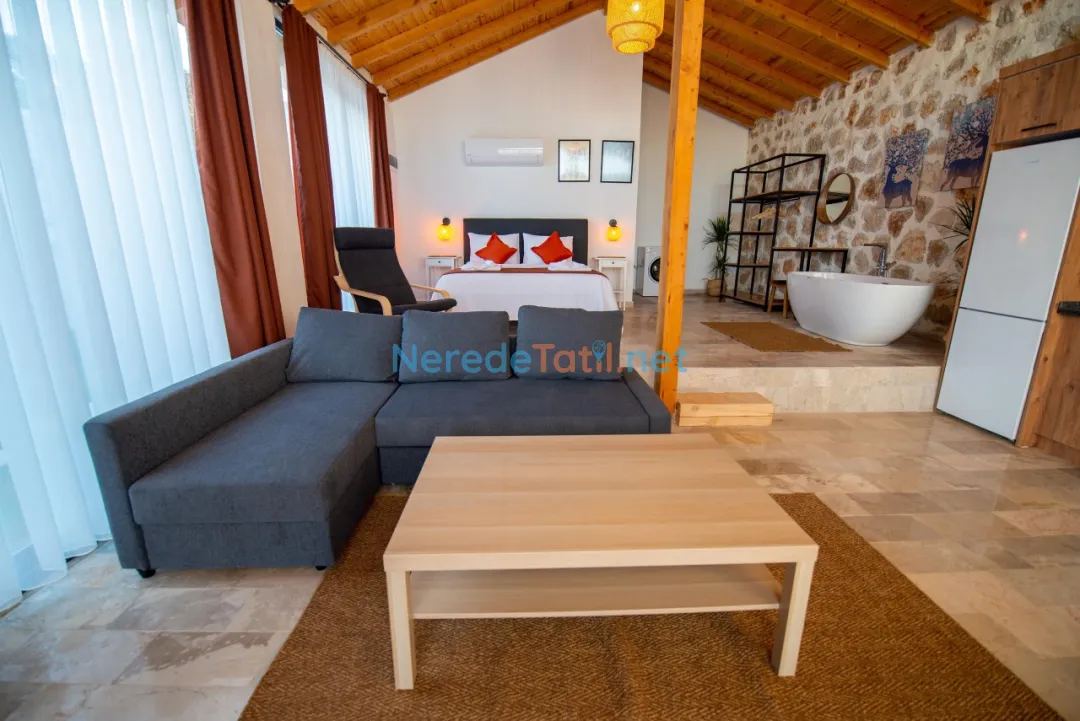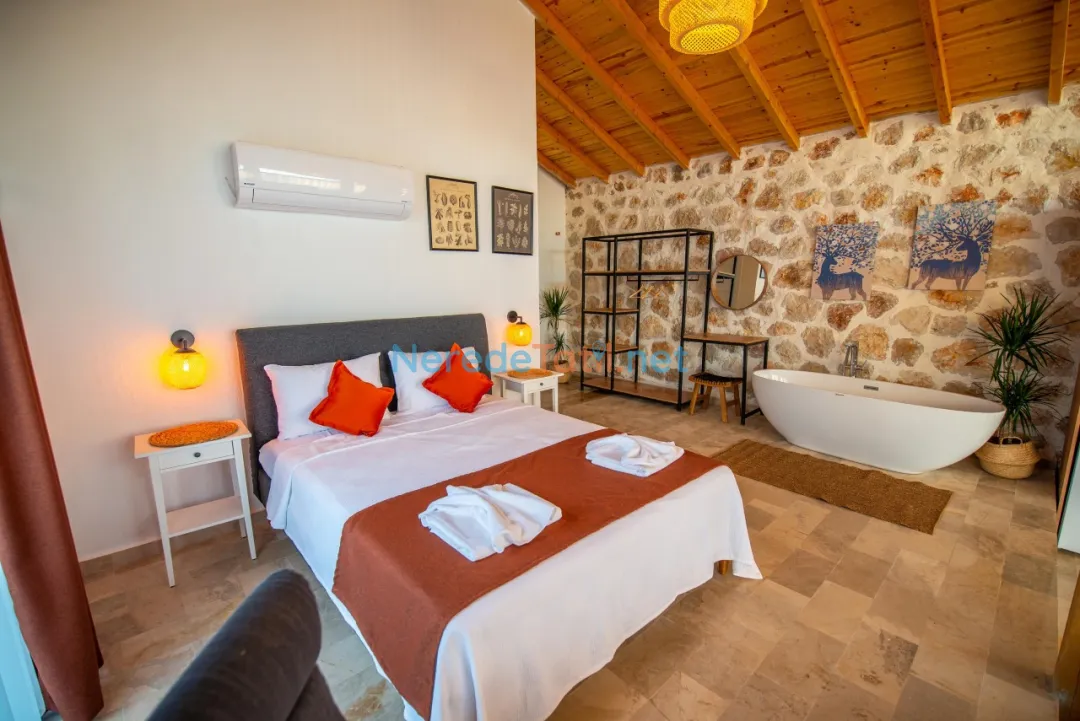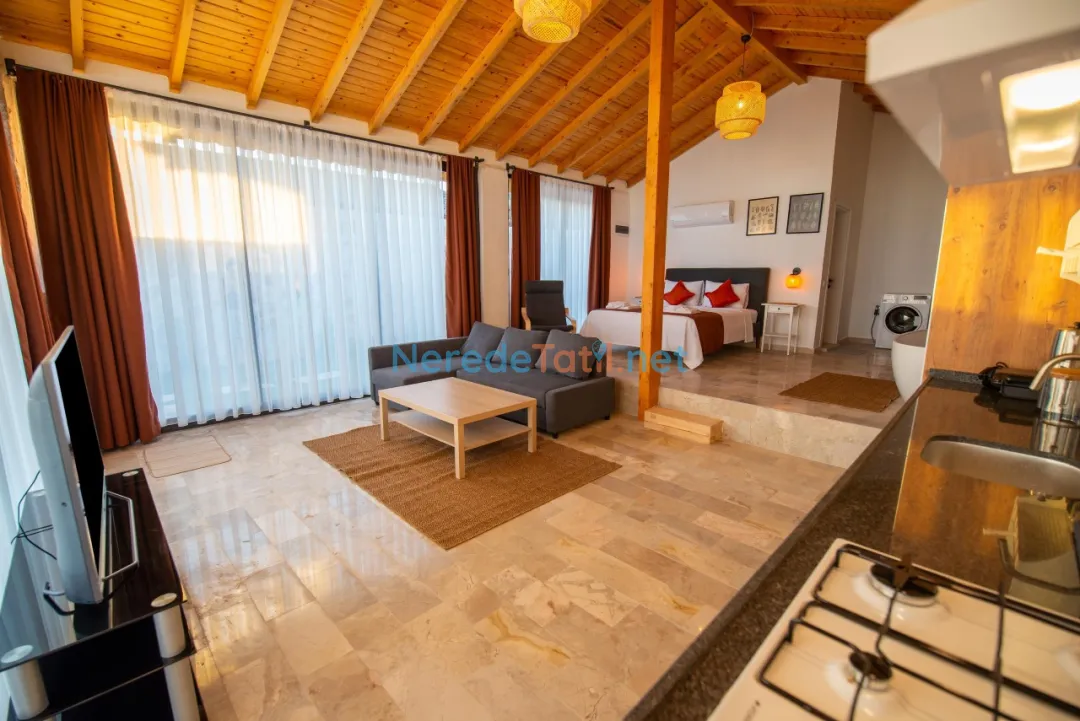 Villa, 1 yatak odası ve 1 banyo ile iki kişilik bir konaklama kapasitesine sahiptir. Çift kişilik yatak konforu ile donatılmış bu samimi ortam, unutulmaz bir balayı tatili için tüm gereksinimlerinizi karşılayacak şekilde dizayn edilmiştir. Çayköy'ün merkezi noktalara olan mesafesi; plajlar 15 km, market 1.5 km, restoranlar 4 km ve hastane 5 km olmak üzere oldukça erişilebilir konumdadır.