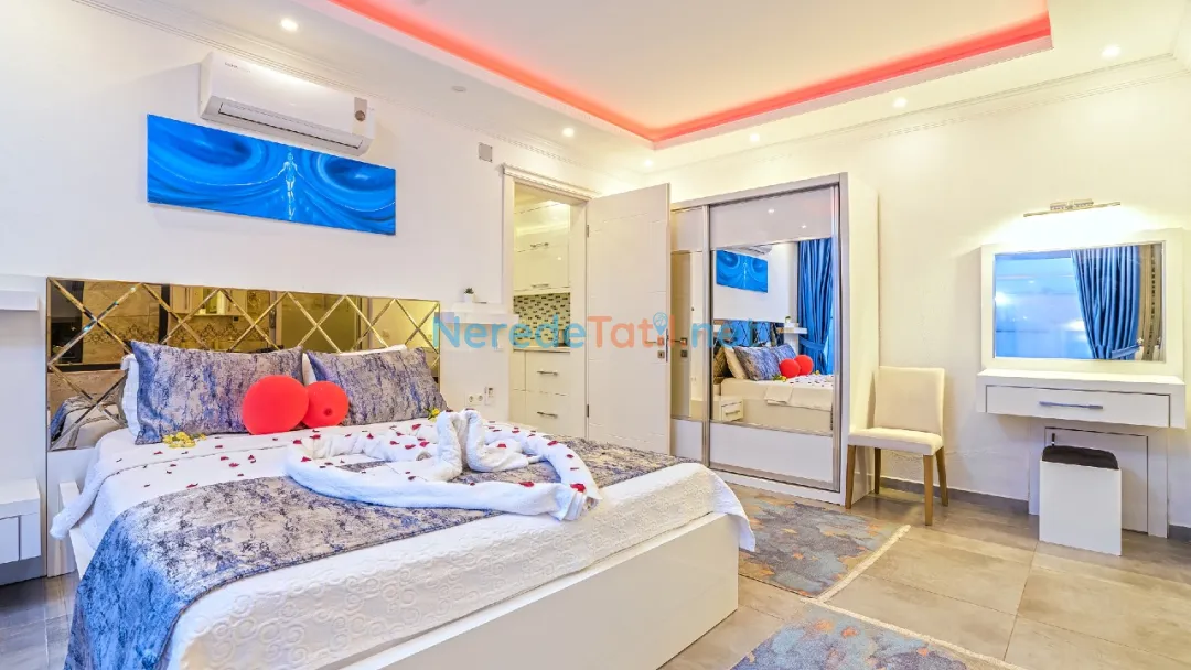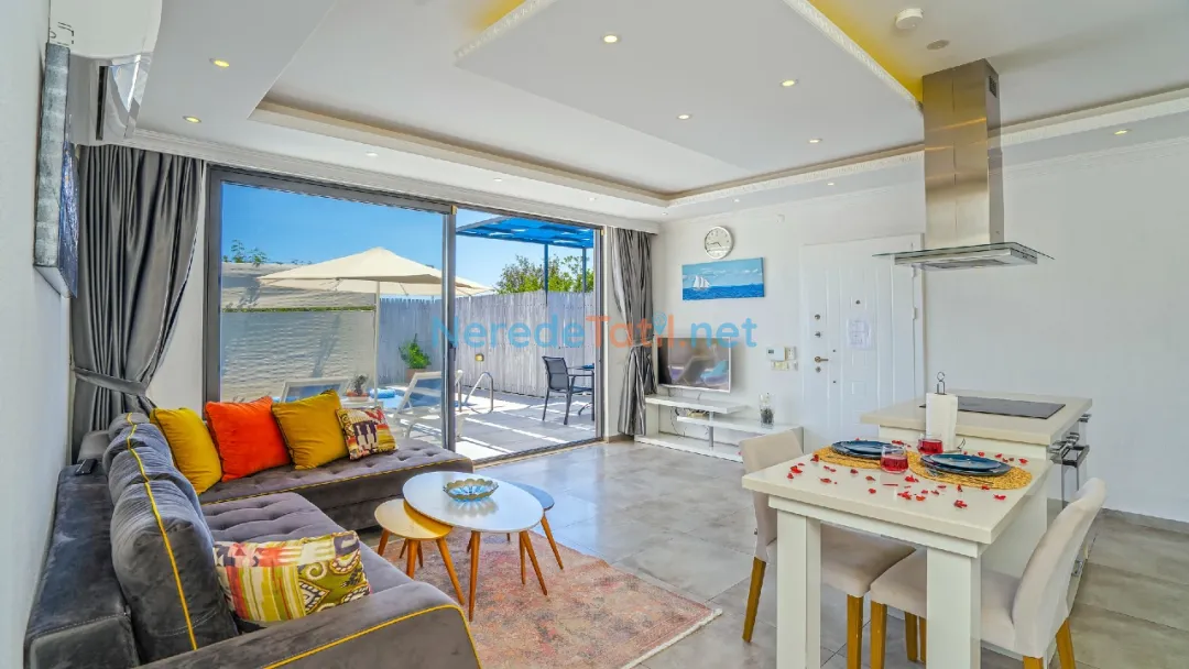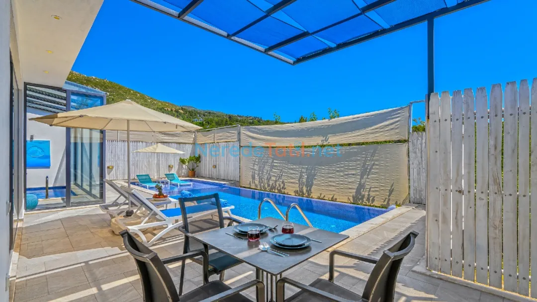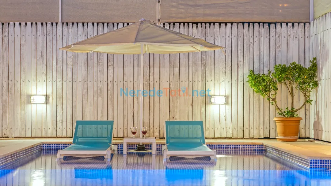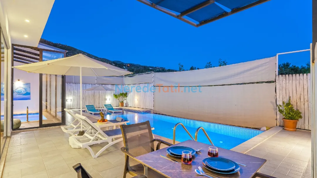 Üzümlü'nün eşsiz doğasında konumlanmış bu lüks villa, özellikle balayı çiftleri için ideal bir kaçamak sunuyor. Villada özel bir havuz bulunmakta olup, havuzun ölçüleri 4 metre genişliğinde ve 7 metre uzunluğundadır. Ayrıca, korunaklı yapısı ile mahremiyet ön planda tutulmuştur.