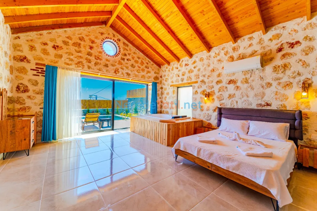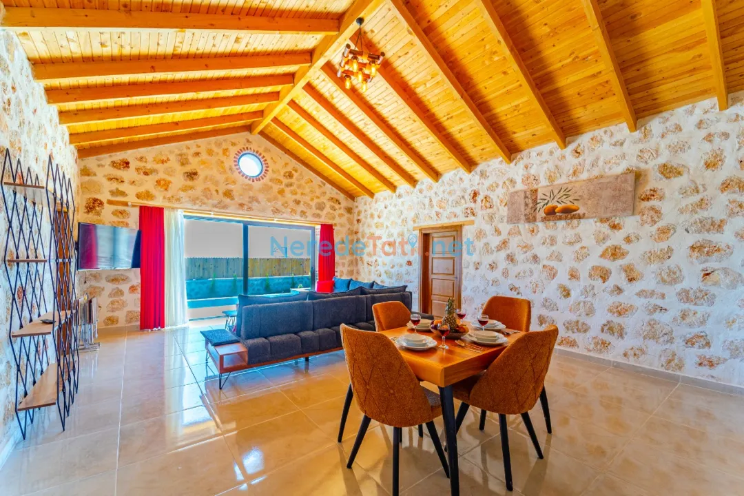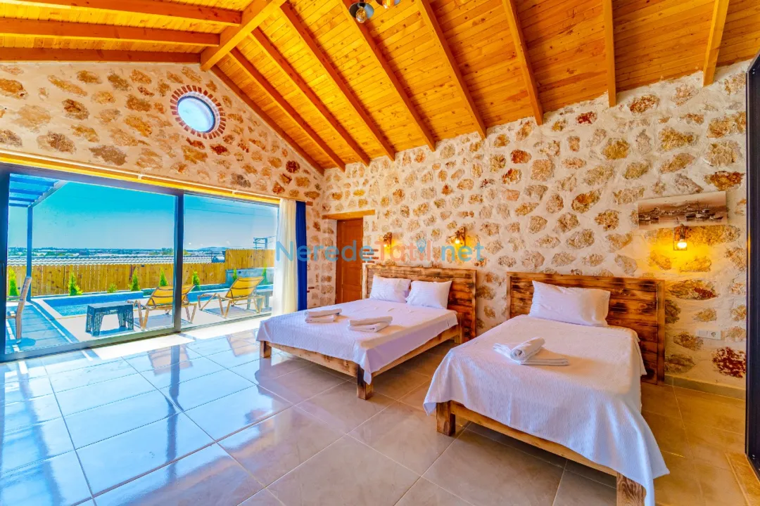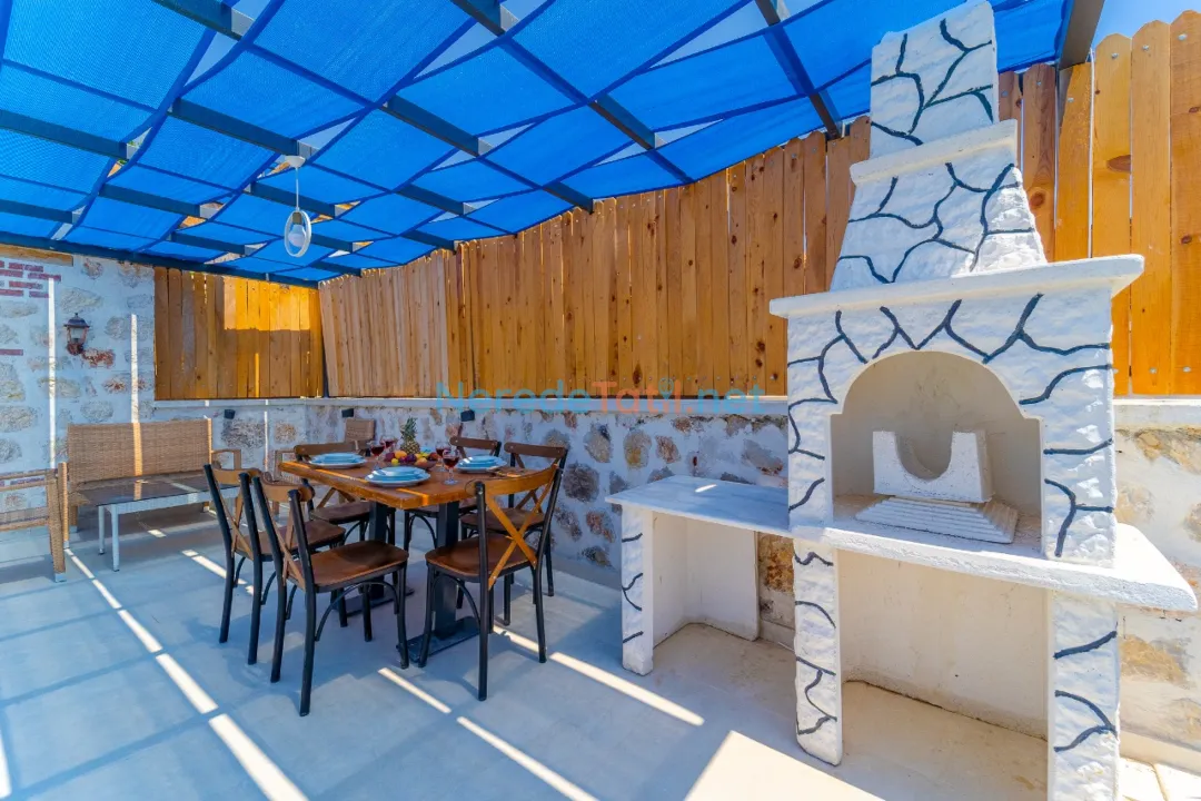 Villanın özel yüzme havuzu, 4x8 metre boyutları ve 1.5 metre derinliği ile tatil keyfinizi ikiye katlıyor. Havuz, korunaklı yapısı sayesinde gözlerden uzak, rahat bir yüzme deneyimi sunar. Havuz kenarında, doğanın sesleri eşliğinde güneşlenebilir veya BBQ - mangal keyfi yapabilirsiniz.