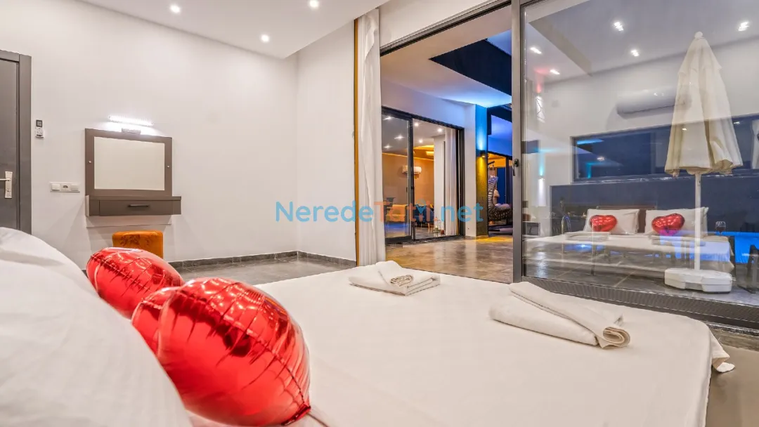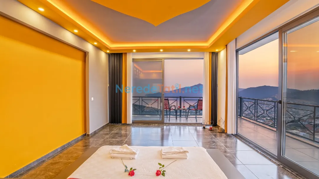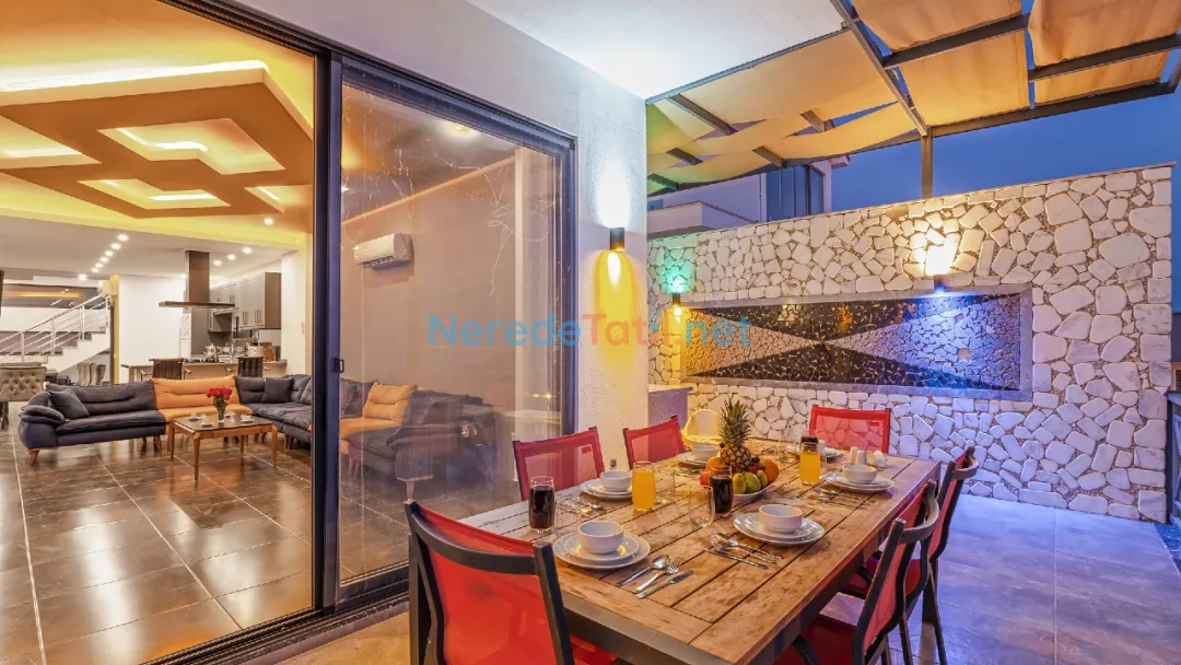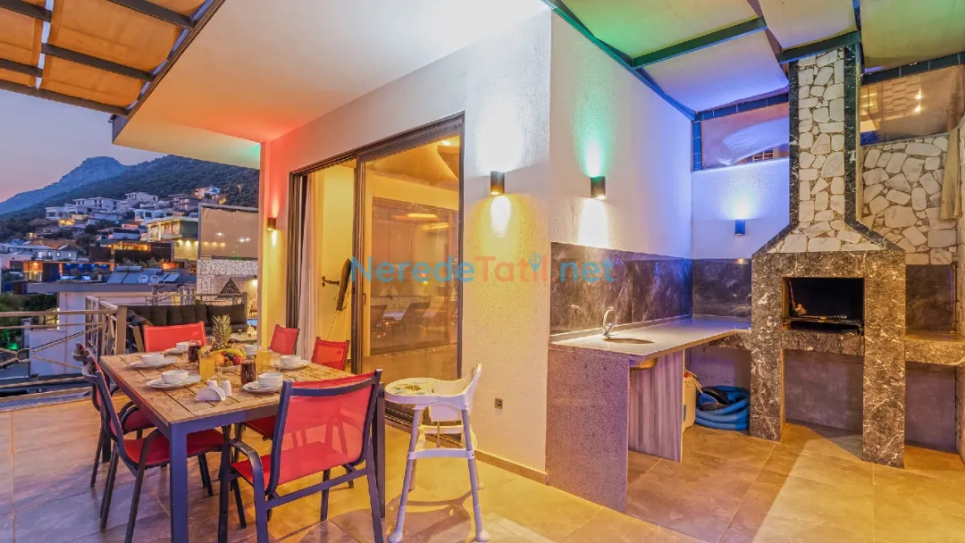 Villanın konumu da oldukça avantajlıdır; market ve restorana sadece 200 metre mesafede olup, plaja 5 kilometre uzaklıktadır. Kalkan merkezine ise 4 kilometre mesafede yer almaktadır. Tatiliniz boyunca BBQ - Mangal imkanlarından da faydalanarak, sevdiklerinizle keyifli vakit geçirebilirsiniz.
