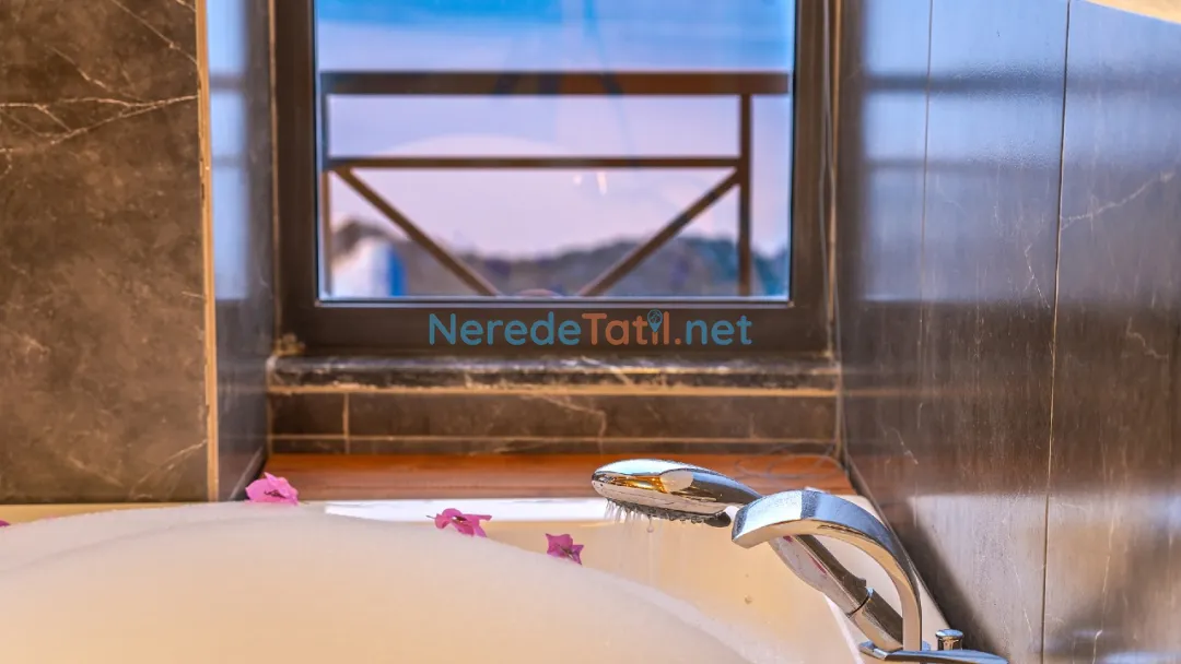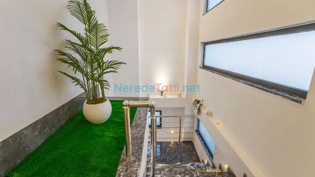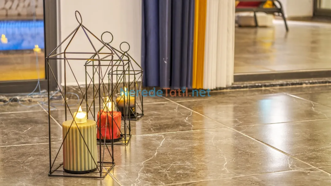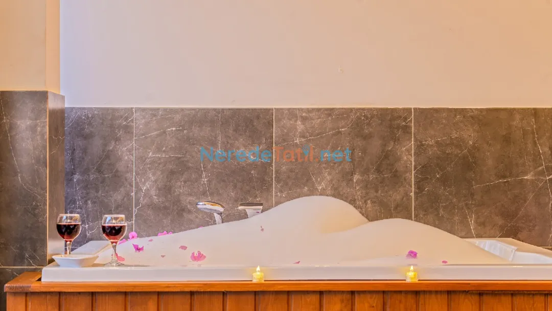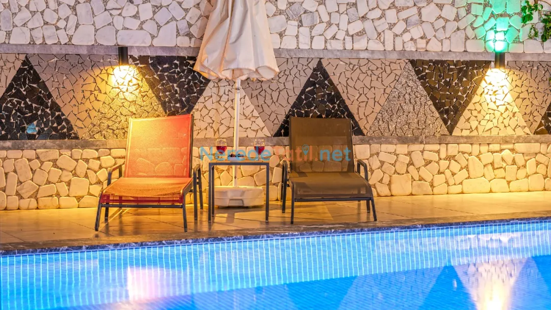 Villanın 4 metre eninde, 8 metre boyunda ve 1.55 metre derinliğinde bir havuzu vardır. Ayrıca, jakuzi ve sauna gibi lüks özellikler tatilinizi daha da konforlu hale getiriyor. Doğa manzaralı ve bahçeli alanlarıyla, huzurlu ve korunaklı bir ortam sunar.