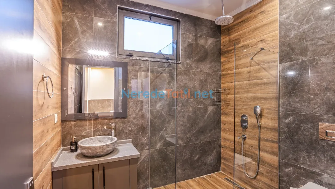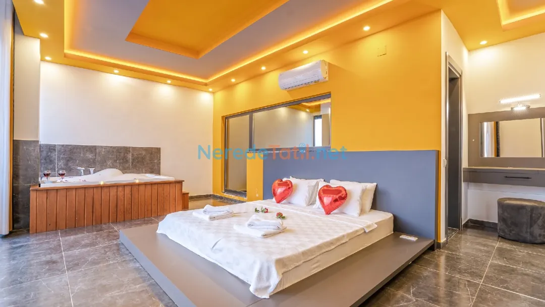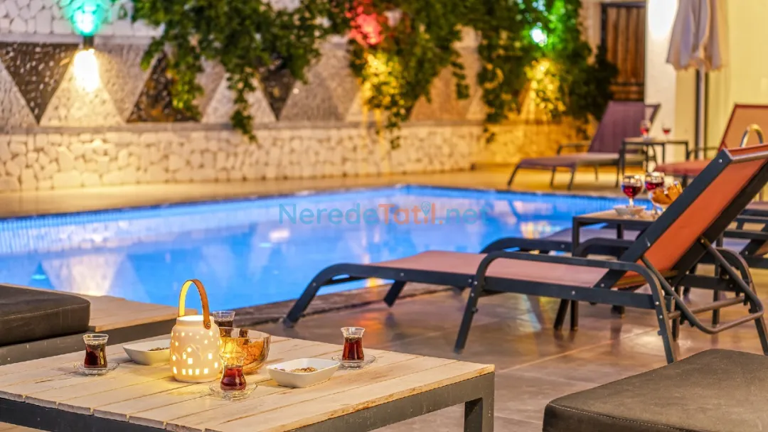 Kördere'nin benzersiz güzellikleri arasında yer alan bu villa, toplamda 6 kişilik konaklama kapasitesi sunuyor. Üç yatak odası ve üç banyosu bulunan villada, iki çift kişilik ve iki tek kişilik yatak bulunmaktadır. Villanın geniş ve özel havuzunda yüzme keyfi yaşarken, deniz manzarası eşliğinde unutulmaz anlar geçirebilirsiniz.