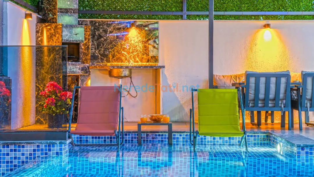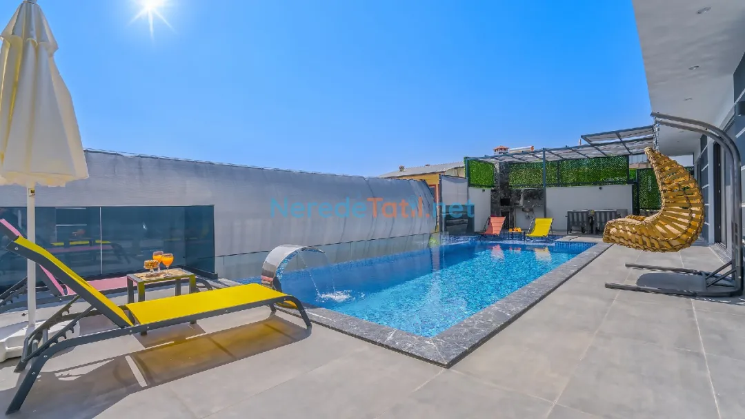 Villanızda, korunaklı ve özel yüzme havuzunun keyfini çıkarabilirsiniz. Havuzun 3 metre genişliğinde ve 8 metre uzunluğundadır, derinliği ise 1.55 metre olarak tasarlanmıştır. Tatilinizi daha da özel kılmak için villada jakuzi bulunmaktadır.