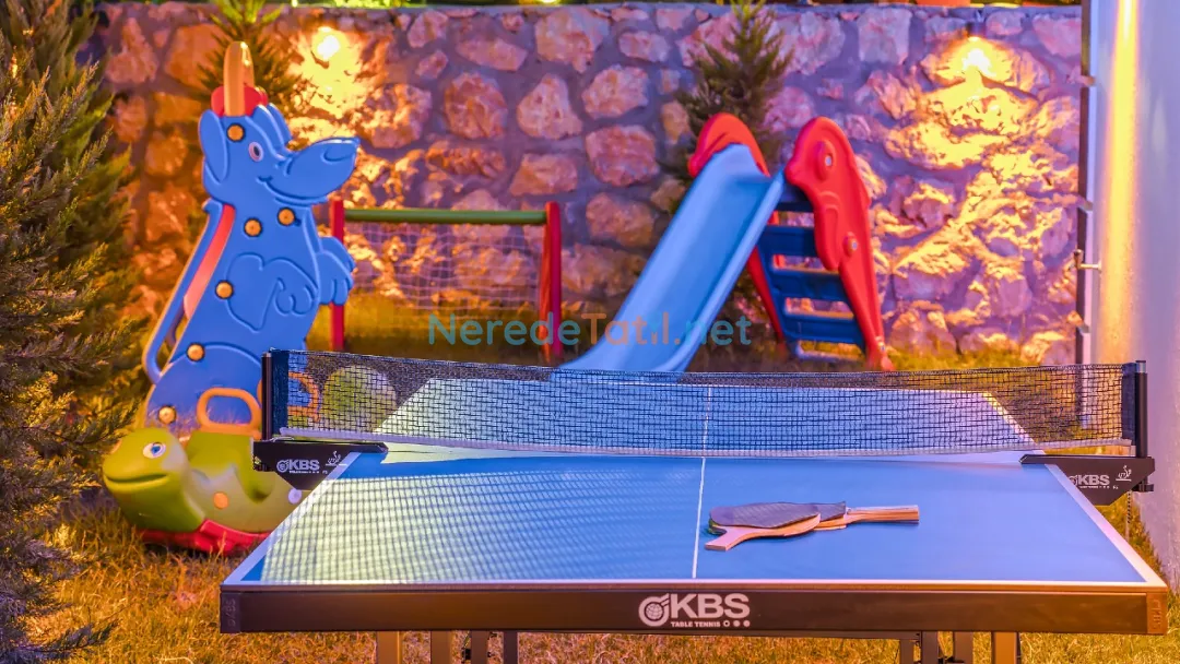 Villanın çevresinde, bahçeli bir alan, BBQ - Mangal imkanı ve doğa manzarası eşliğinde huzurlu anlar yaşayabilirsiniz. Ayrıca masa tenisi, çamaşırlarınızı ütülemek için ütü ve saç kurutma makinesi gibi konfor sağlayan ekipmanlar da mevcuttur.