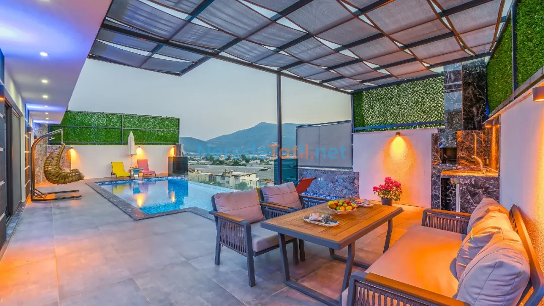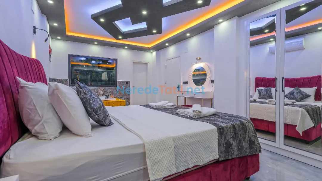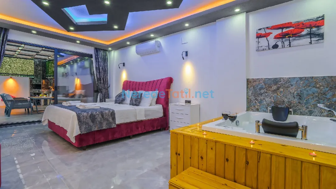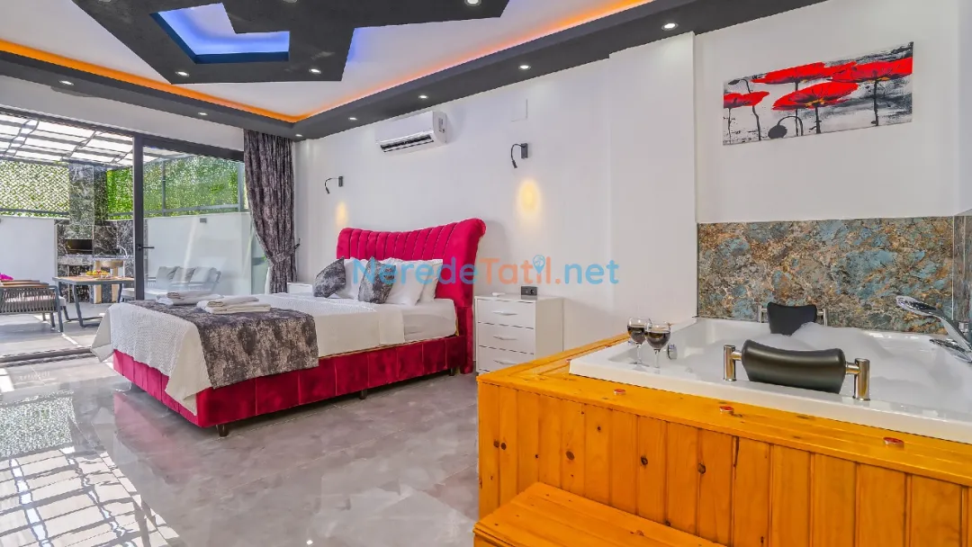 Yeşilköy'ün eşsiz doğal güzellikleri arasında yer alan bu lüks villa, balayı çiftleri ve muhafazakar tatilciler için ideal bir seçenektir. Villanın 4 kişilik kapasitesi ile iki yatak odası ve iki banyosu bulunmaktadır. Bir çift kişilik yatak ve iki tek kişilik yatak ile konforlu bir konaklama sunar.