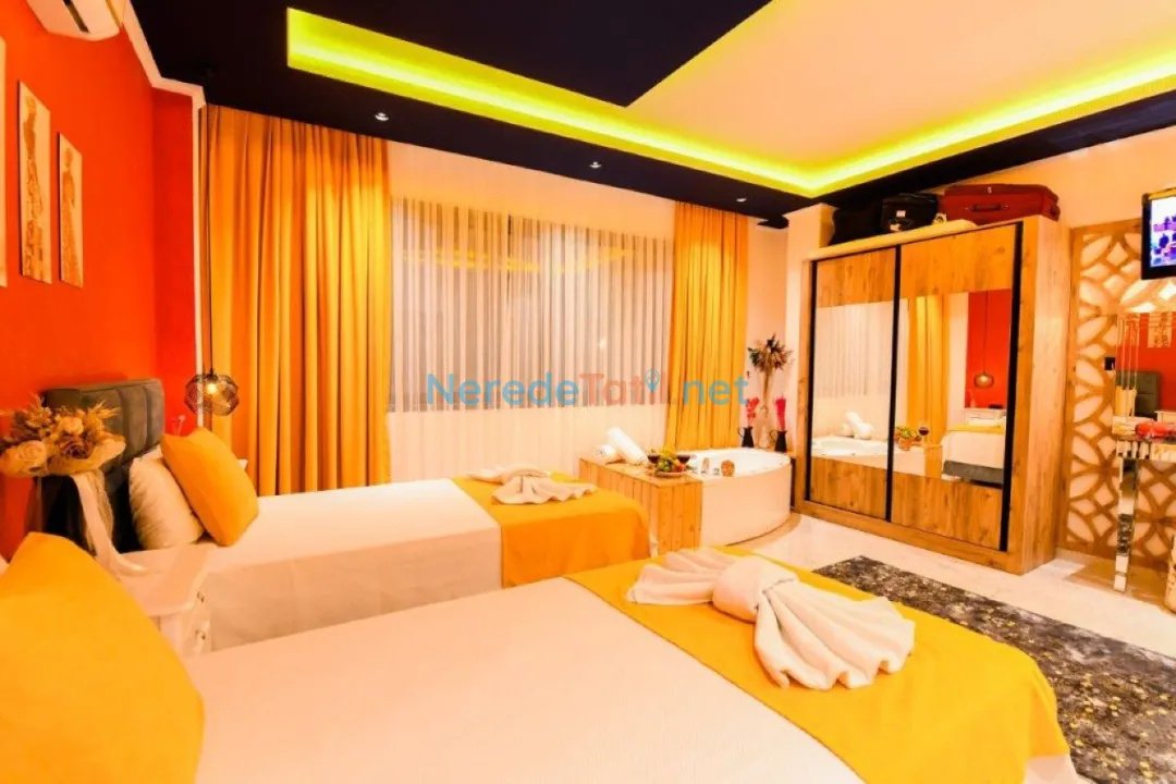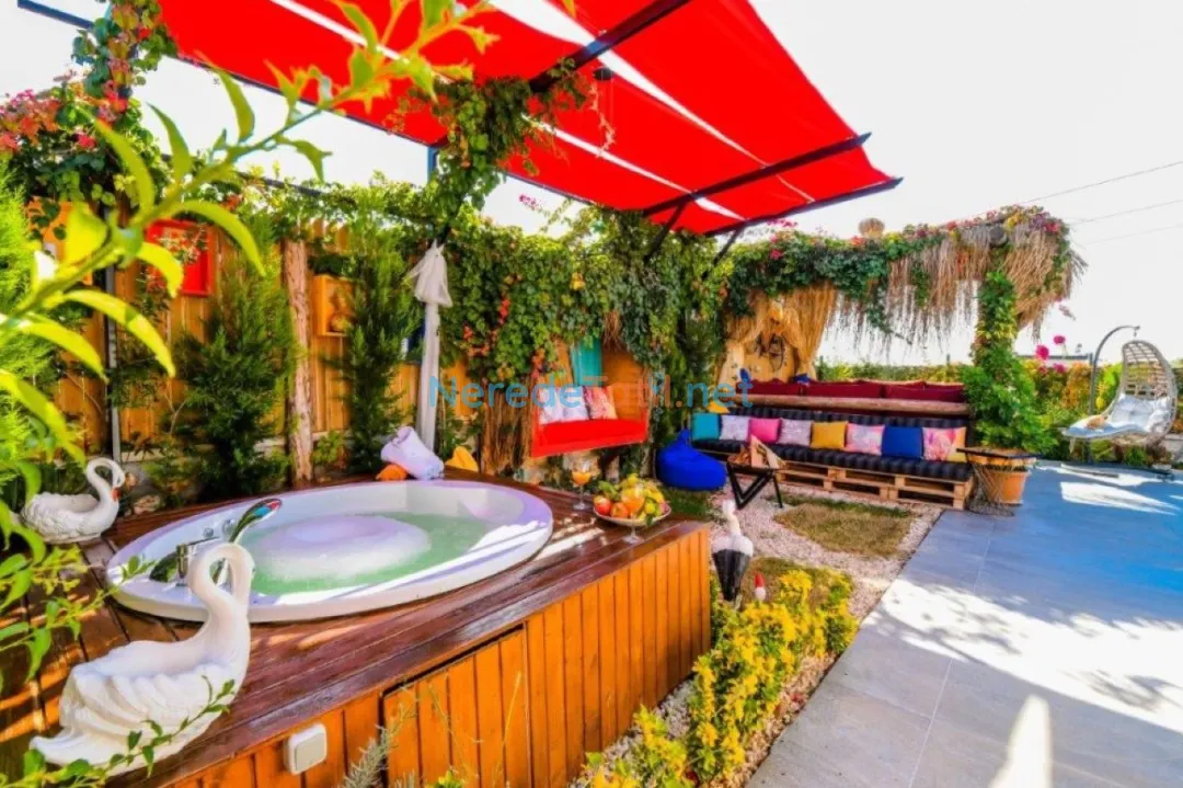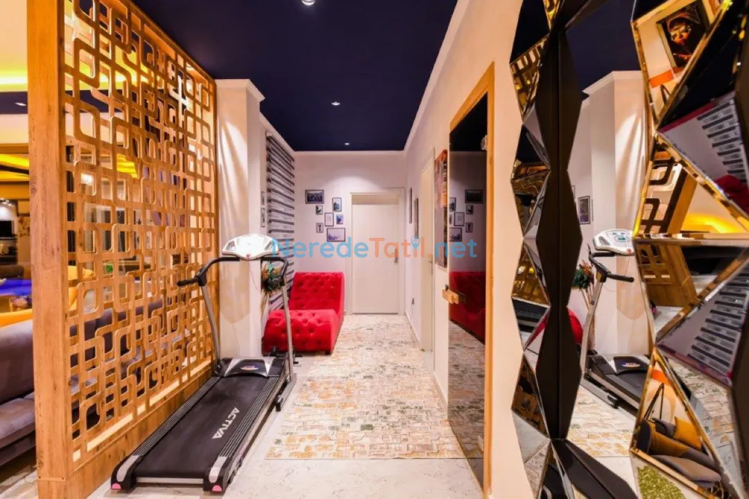 Villanın geniş bahçesinde BBQ - mangal keyfi yapabilir, üstün konforlu jakuzi ile günün yorgunluğunu atabilirsiniz. Geniş sauna ve sinema salonu ise tatilinize lüks katmaktadır. Ayrıca konukların rahatlığı için villa içinde saç kurutma makinesi ve ütü gibi olanaklar sunulmuştur.