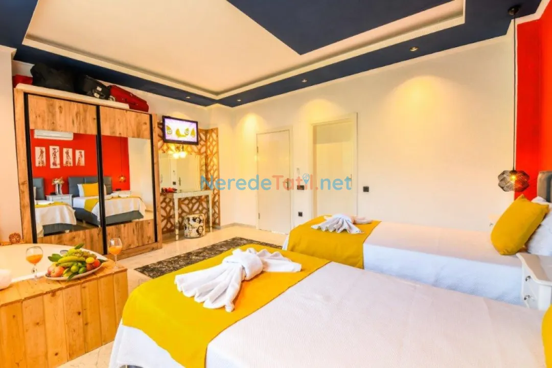 Çayköy'ün eşsiz doğasında konumlanmış bu villa, özel havuz ve korunaklı ortamı ile huzurlu bir konaklama sunar. Villada 2 yatak odası bulunmakta olup, rahat bir uyku için bir adet çift kişilik yatak ve iki adet tek kişilik yatak sunulmaktadır. Toplamda 4 kişi kapasitesine sahip bu villa, özellikle balayı çiftleri için idealdir.