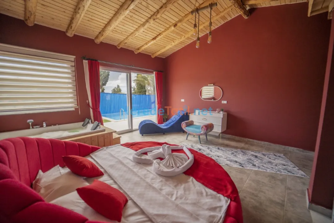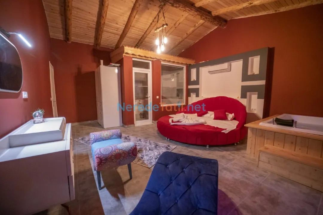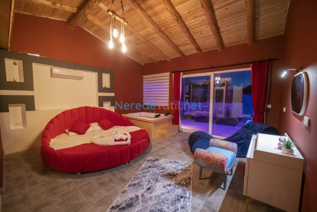 Villanın iç tasarımında jakuzi detayı, konuklara ekstra bir lüks sunarken, bahçeli alanı ve barbekü olanakları keyifli, açık hava etkinliklerine olanak tanır. Araçla gelen misafirler için otopark imkanı mevcuttur. 2 kişilik kapasitesi ile özel bir tatil deneyimi sunan villamız, çift kişilik yatağı, bir banyosu ve tüm modern olanakları ile rahatınızı düşünerek tasarlanmıştır.