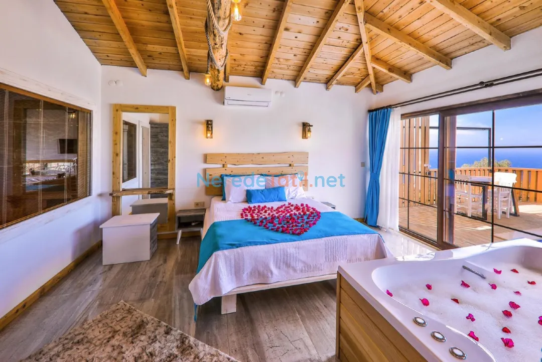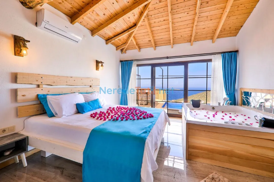 Villada, tek çift kişilik yatak odası ve bir banyo bulunuyor. Bu özellikleri ile özellikle balayı çiftleri için ideal bir konaklama imkanı sunuyor. Deniz manzarası eşliğinde uyanarak güne başlamak ve akşamları jakuzi keyfi yapmak, tatilinizi unutulmaz kılacak anların başında geliyor.