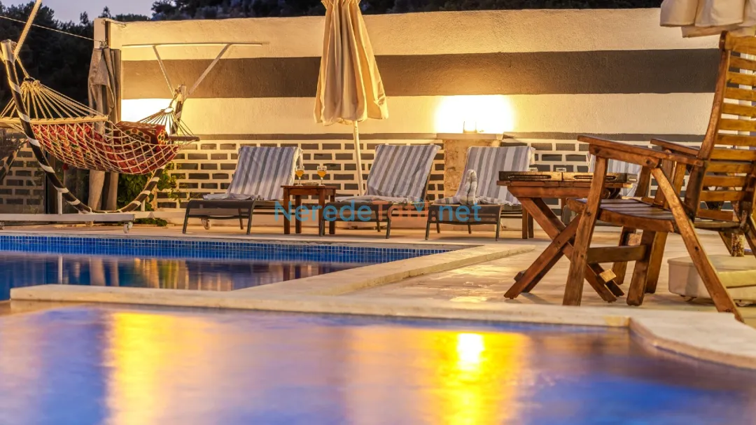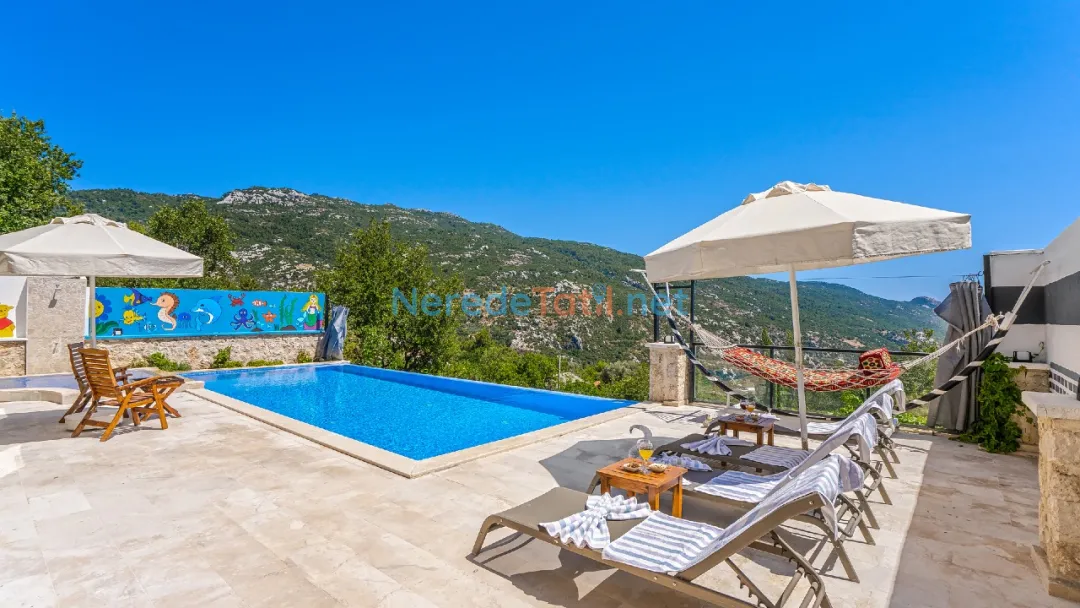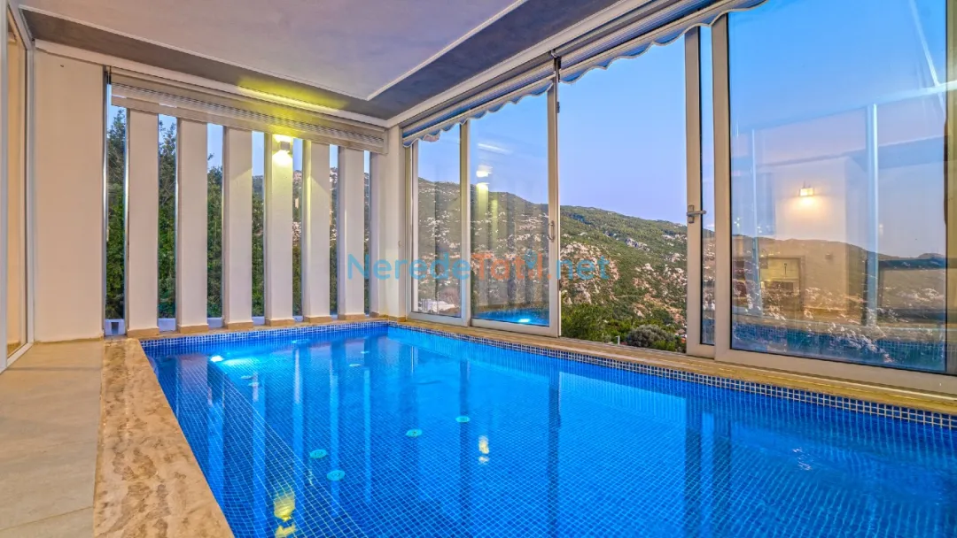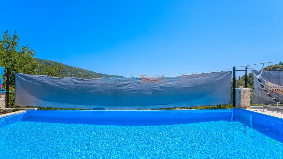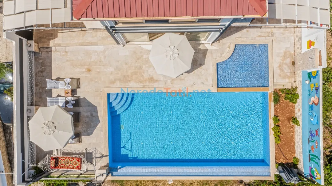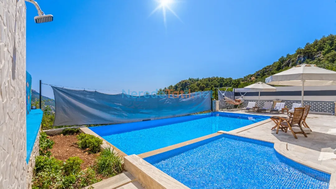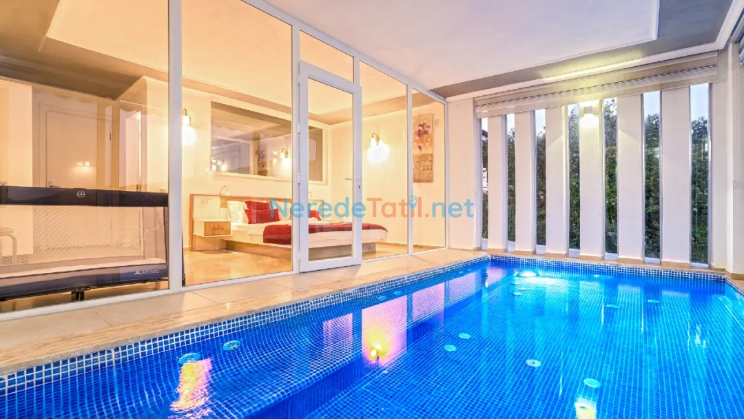 Villanın özel yüzme havuzu, 4x11 metre boyutlarında ve 1.5 metre derinlikte olup, yüzme keyfini doyasıya yaşamanızı sağlar. Ayrıca, kapalı havuz seçeneği de mevcuttur ve 3x5 metre boyutlarında, 1 metre derinliğindedir. Villa, muhafazakar tatil arayanlar için korunaklı bir havuza sahiptir.