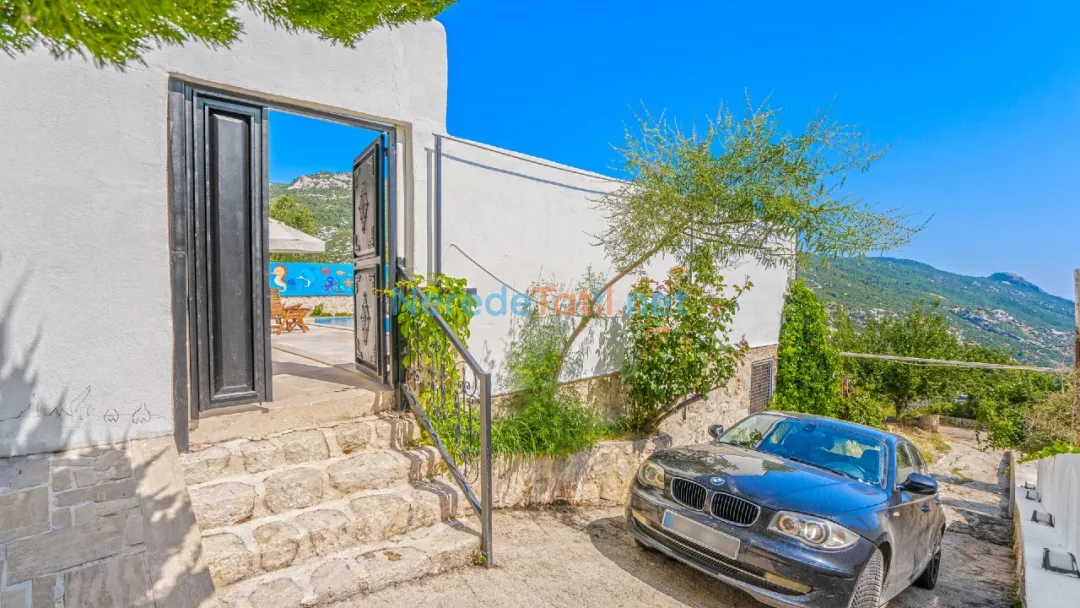 Villanın bulunduğu konum, merkezden yalnızca 7.5 km, plajdan ise 8 km uzaklıktadır. En yakın market 500 metre, restoran ise 1 km mesafededir, bu da günlük ihtiyaçlarınızı kolayca karşılamanızı sağlar. Aracınız için otopark imkanı da bulunmaktadır.