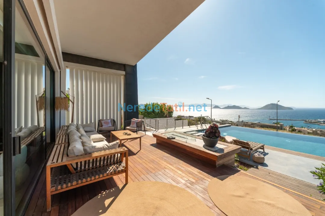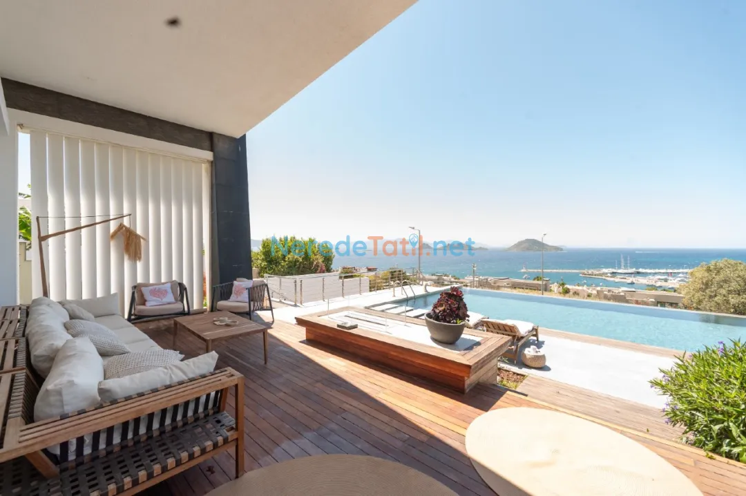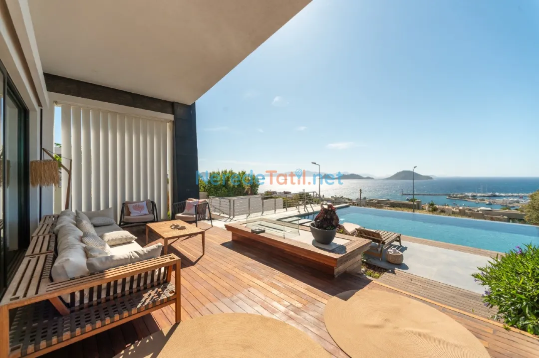 Delüks yazlık Villamız Ege'nin en görkemli panoramik manzarasına sahip, Turgutreis Akyarlar yolu üzerinde D-Marin tepelerinde konuşlanmıştır.