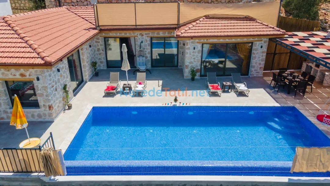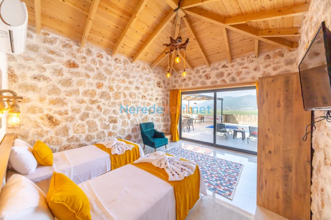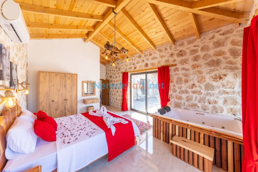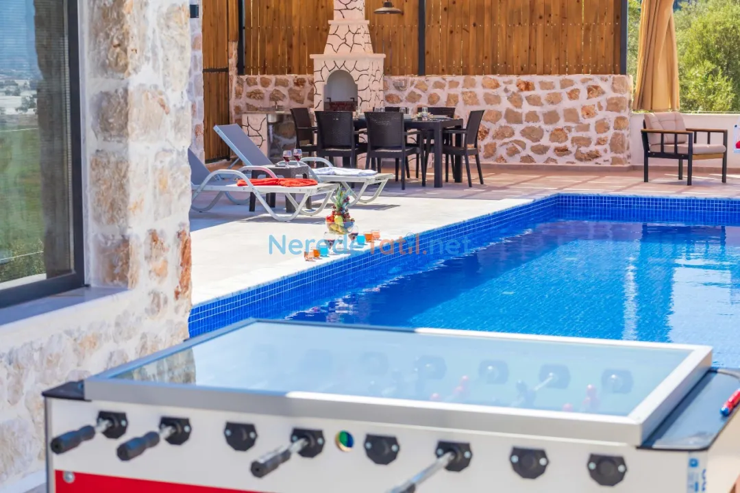İçeride, iki yatak odası ve iki banyo bulunmaktadır. Bir adet çift kişilik yatak ve iki adet tek kişilik yatak ile konforlu bir konaklama sağlanır. Villada bulunan jakuzi, yoğun bir günün ardından rahatlamak için mükemmel bir alan sunar. Ayrıca, oyun alanı ve langırt gibi eğlenceli aktiviteler de mevcuttur.