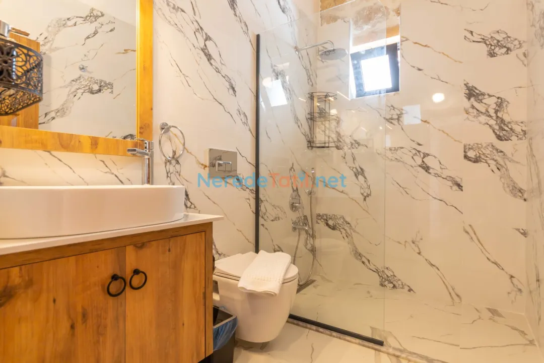 Özel otopark alanı ve saç kurutma makinesi, ütü gibi detaylar, konaklamanızı daha da konforlu hale getirir. Lüks villalar ve muhafazakar villalar kategorilerinin bir parçası olan bu villa, hem konforu hem de mahremiyeti bir arada sunar.