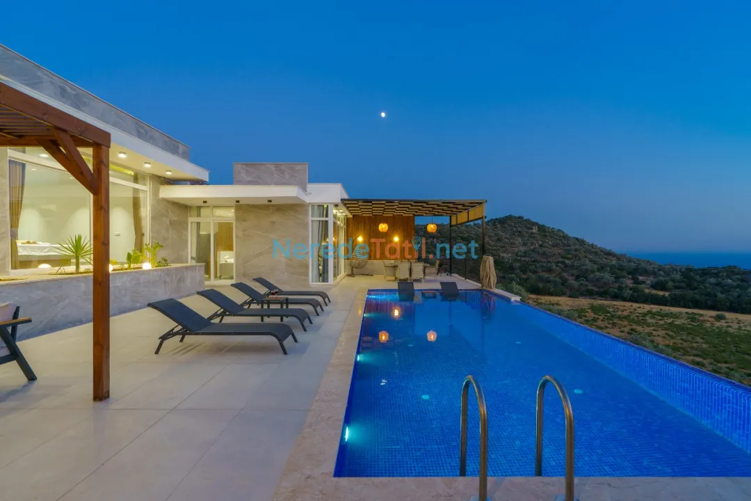 Misafirler, 10 metre uzunluğunda, 4 metre genişliğinde ve 1.5 metre derinliğinde özel yüzme havuzunun tadını çıkarabilir. Deniz manzarası eşliğinde güneşin ve suyun keyfini çıkarırken, günün yorgunluğunu atmak için jakuzi de kullanılabilir. Villanın sunduğu olanaklar arasında BBQ - Mangal, otopark ve günlük ihtiyaçlarınız için saç kurutma makinesi ve ütü da bulunmaktadır.