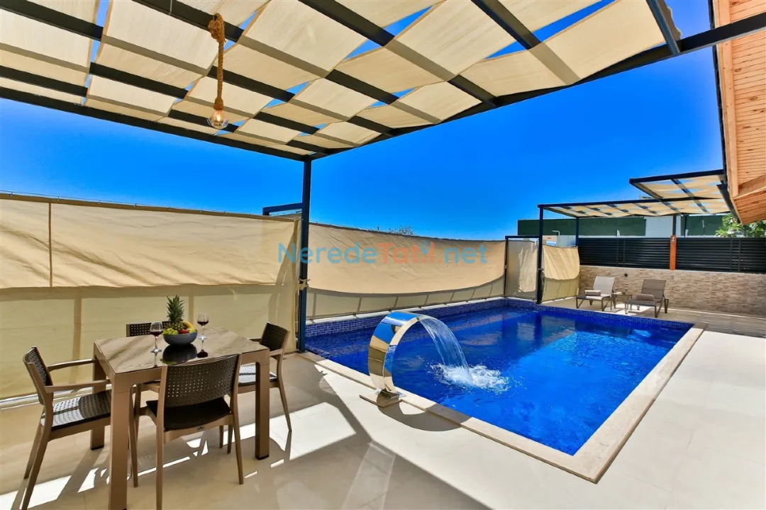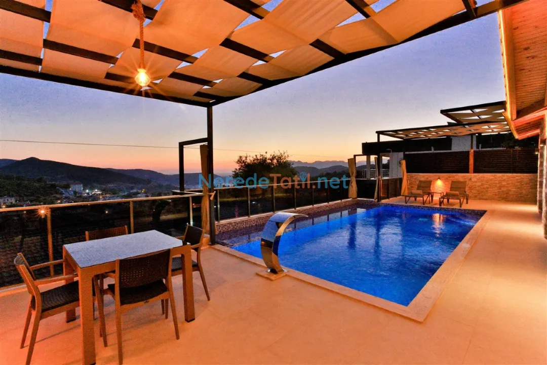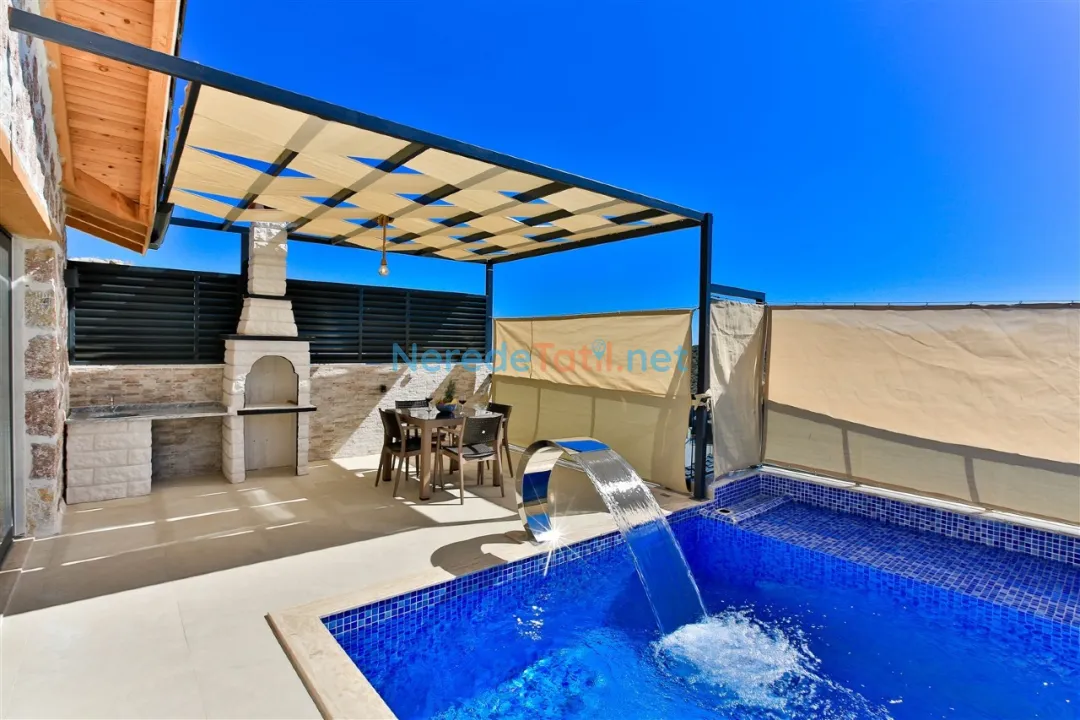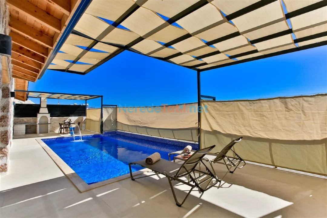 Villanın geniş ve korunaklı özel havuzu 8 metre uzunluğunda, 4 metre genişliğinde ve 1,5 metre derinliğindedir. Ayrıca, deniz manzarası eşliğinde barbekü yapabileceğiniz bir alan da mevcuttur. Şehir merkezine ve plaja sadece 4 km mesafede olan villamız, doğa manzaralı konumuyla huzurlu bir tatil imkanı sunar.