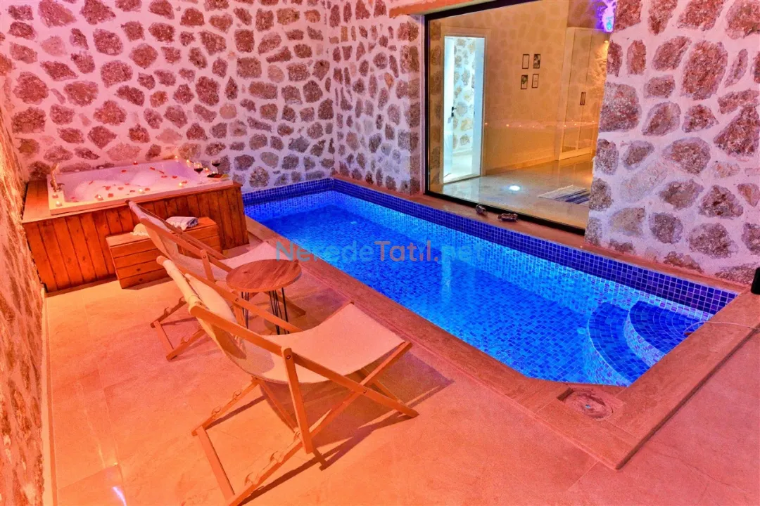 Akbel'in muhteşem doğasında yer alan bu lüks villa, çiftler için unutulmaz bir balayı deneyimi sunuyor. Villamızda iki kişi konaklama kapasitesi, bir çift kişilik yatak ve bir jakuzi bulunmaktadır. Isıtmalı ve kapalı havuz ile her mevsim tatilin keyfini çıkarabilirsiniz.