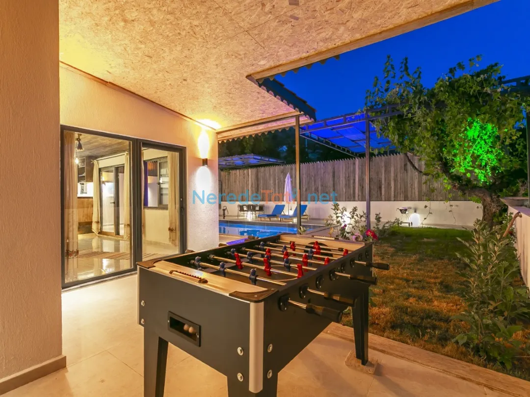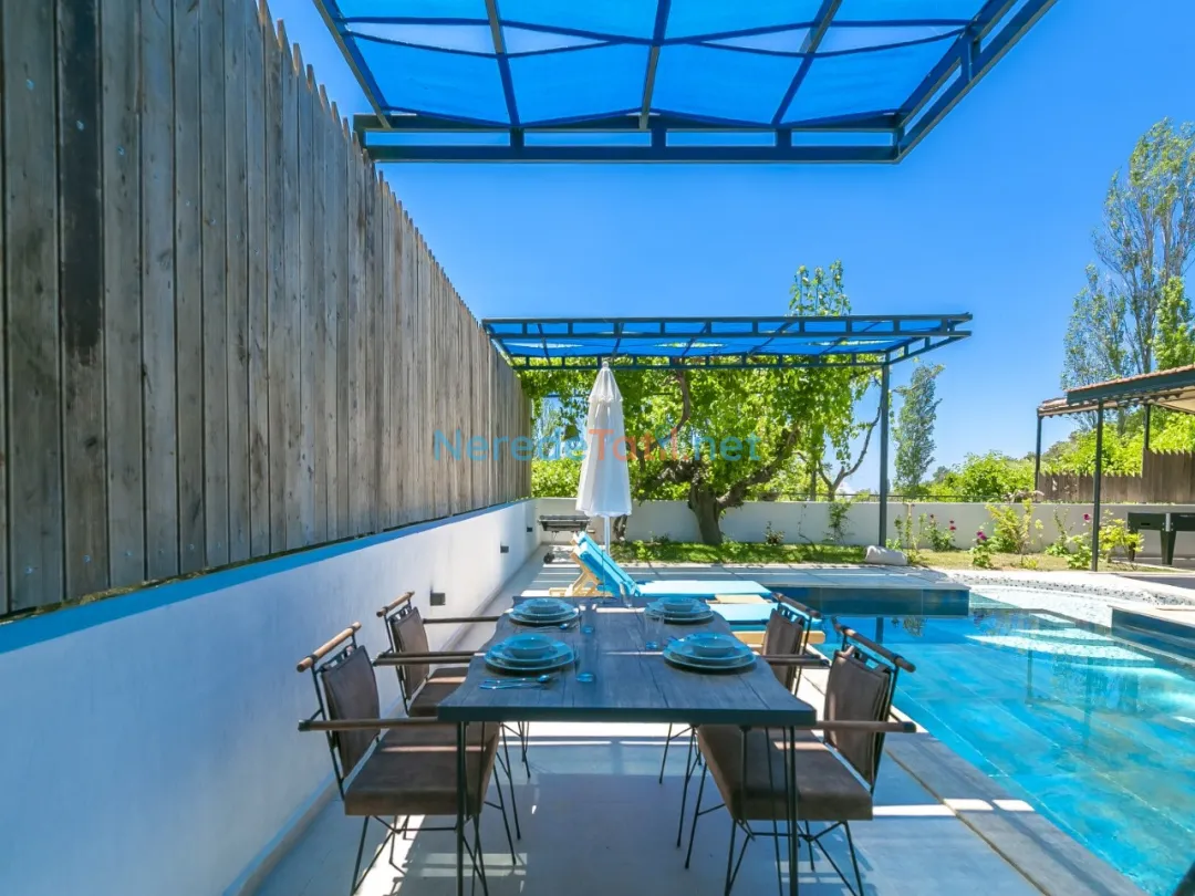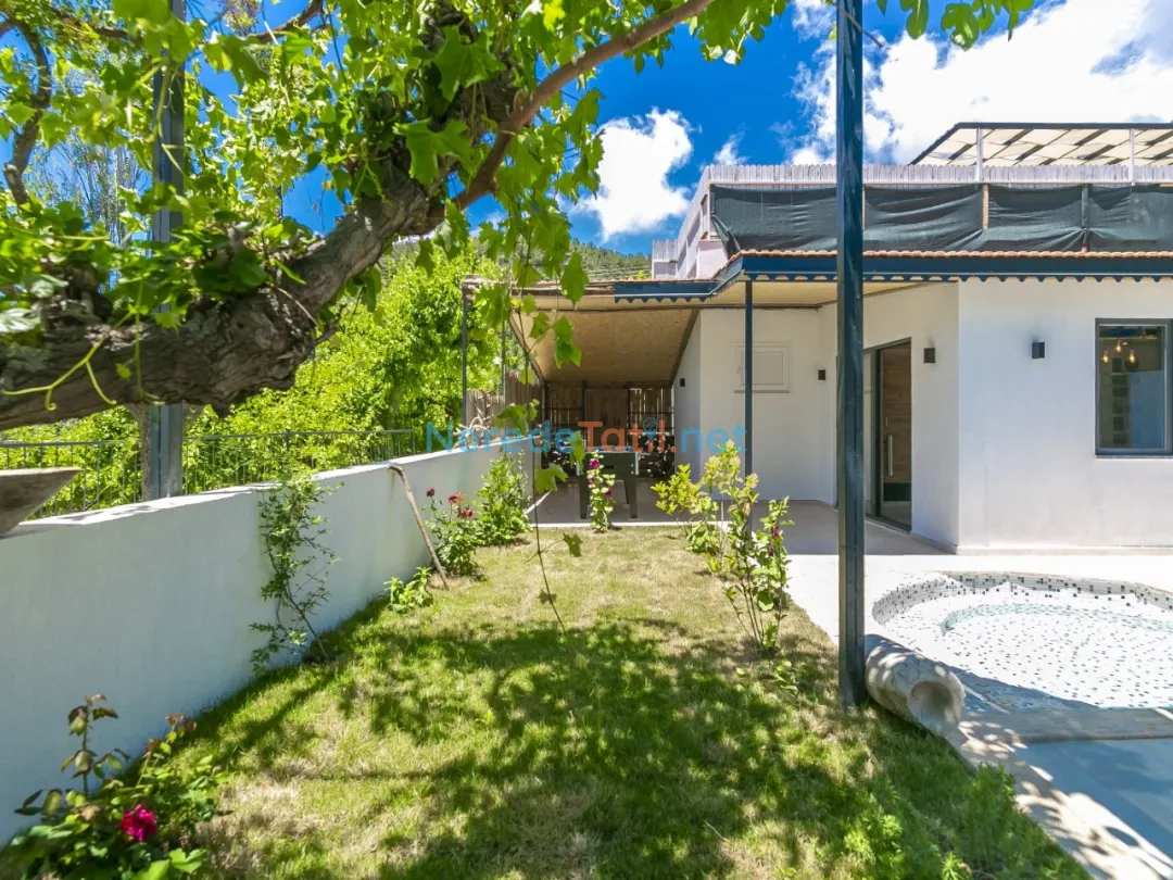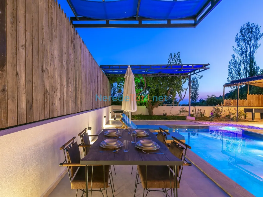 Villanın doğa manzarası, konuklarına huzur dolu bir atmosfer sunarken, lüks detayları ile konforlu bir konaklama deneyimi yaşatır. Villanın içinde bulunan bahçe ve BBQ - Mangal alanı, dış mekan keyfi yaşamak isteyenler için idealdir.
