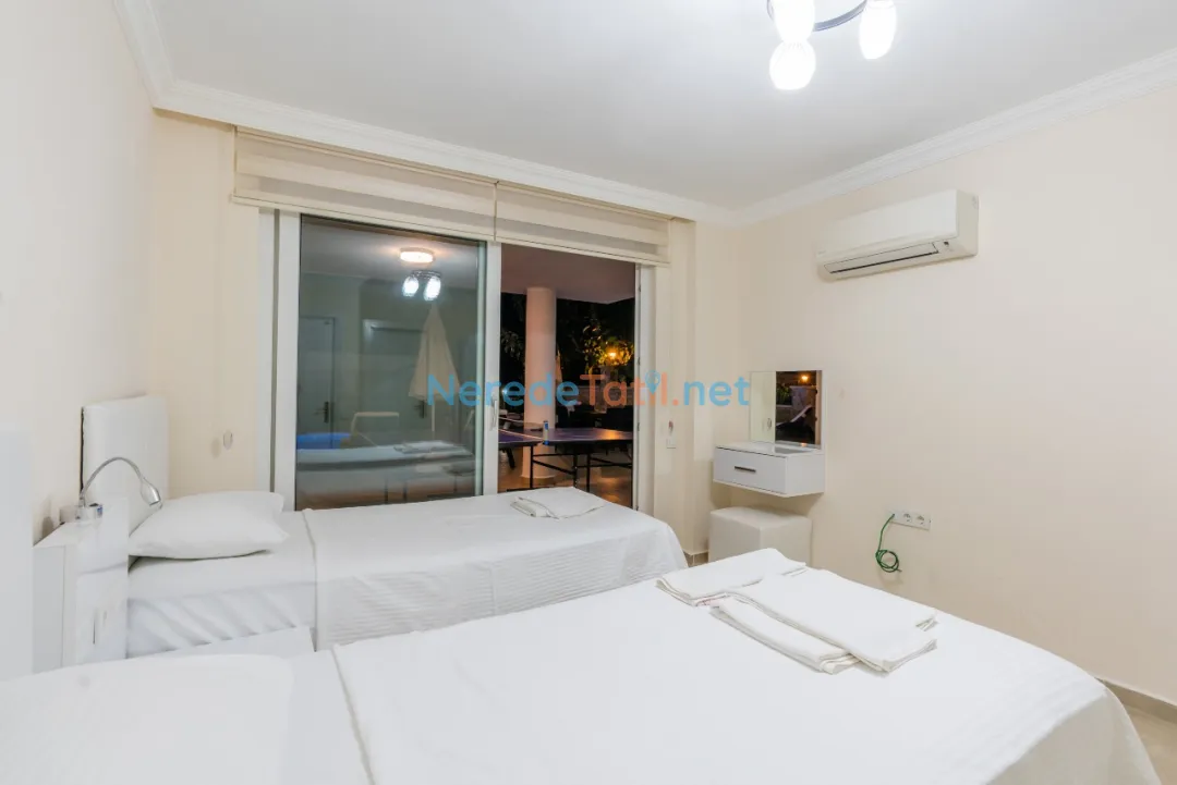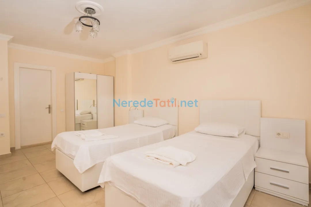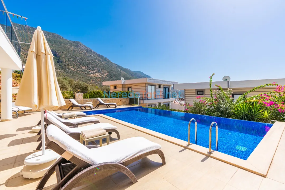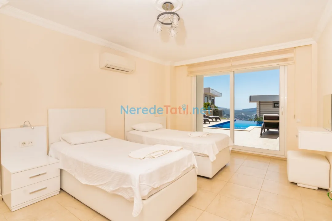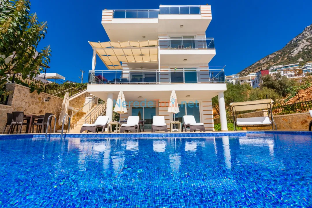 Kalkan'ın büyüleyici doğasında, deniz manzarası eşliğinde huzur dolu bir tatil sizi bekliyor. Bu lüks villa, 10 kişi konaklama kapasitesine sahip olup, geniş ve aydınlık beş yatak odası ve altı banyo ile konforunuzu ön planda tutuyor. Villada bulunan üç çift kişilik yatak, dört tek kişilik yatak ve bir bebek yatağı ile her misafirin rahat etmesi sağlanmıştır.
